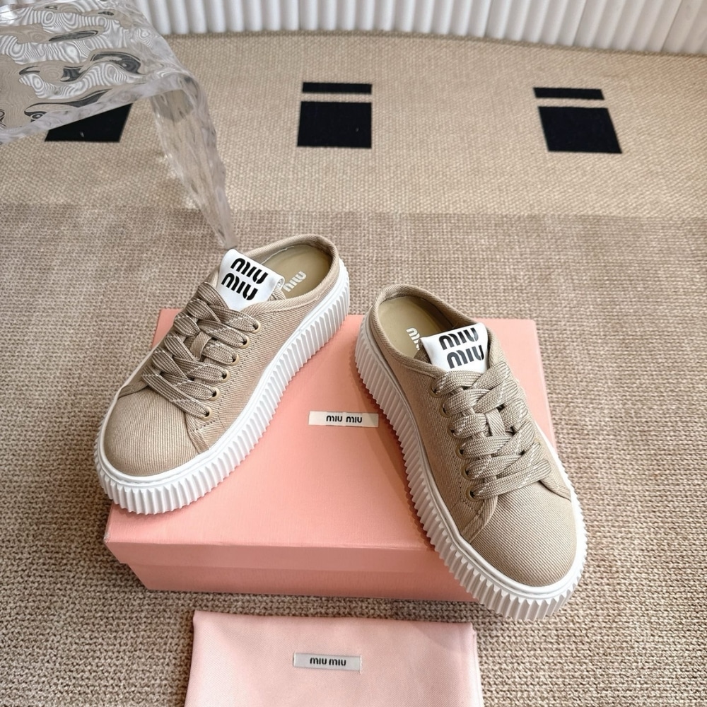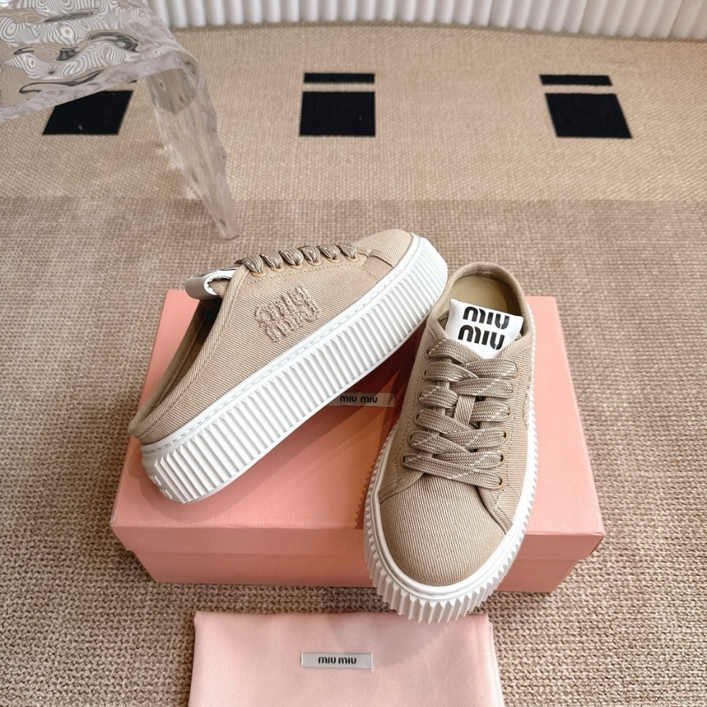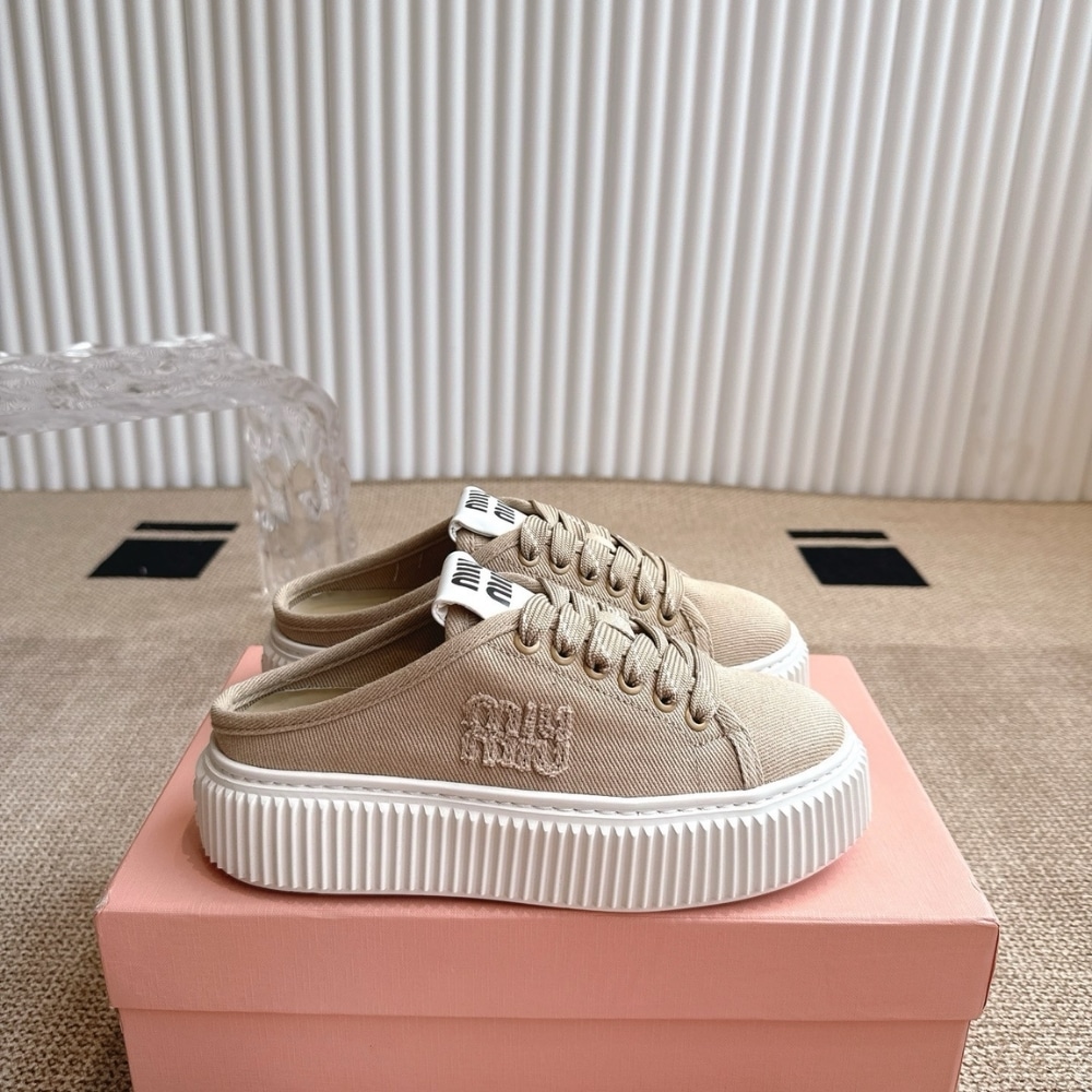 MIUMIU DENIM SNEAKER MULES COLONIAL BEIGE 5E390E 3ARS F0044 F 005
