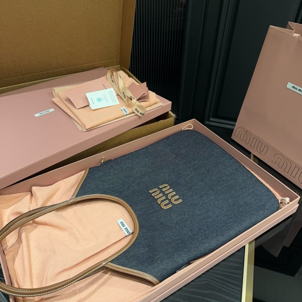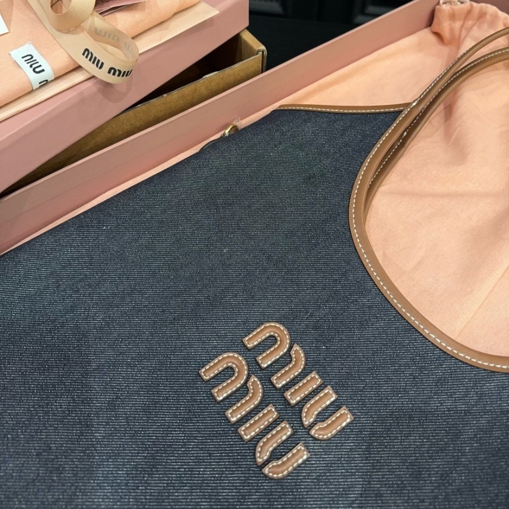 MiuMiu IVY Denim Bag Blue And Brandy 35Cm
