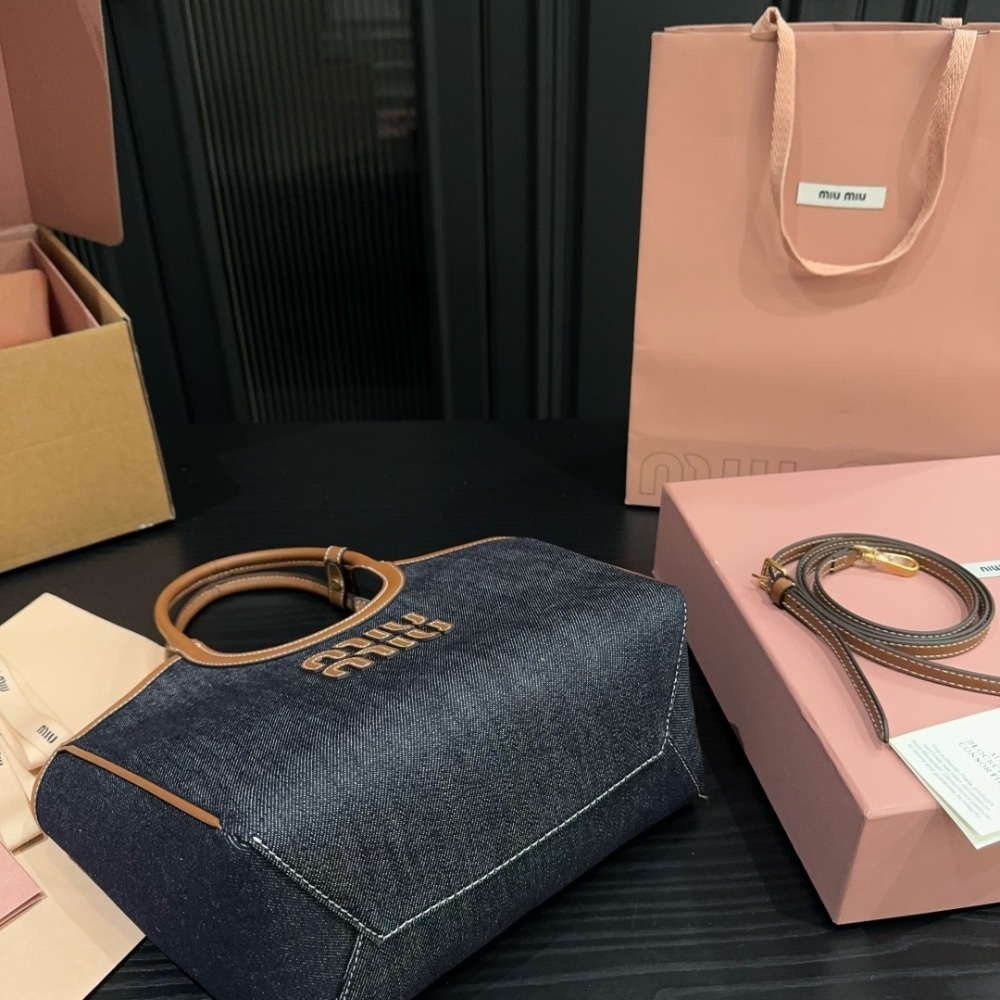 MiuMiu IVY Denim Bag Blue Brandy 22Cm