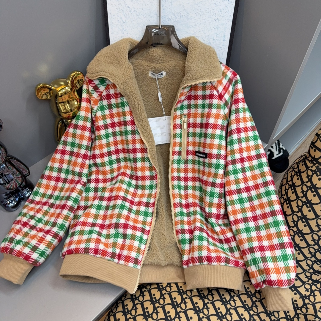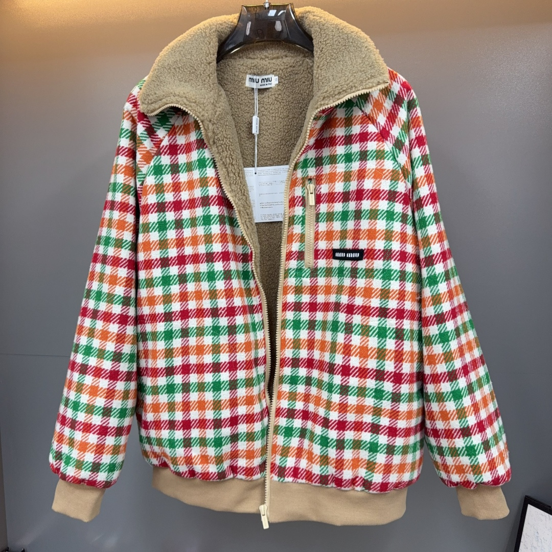 MIUMIU FLEECE LINED CHECKED BLOUSON JACKET MULTICOLOR ML1358 18FU F04UO S OOO