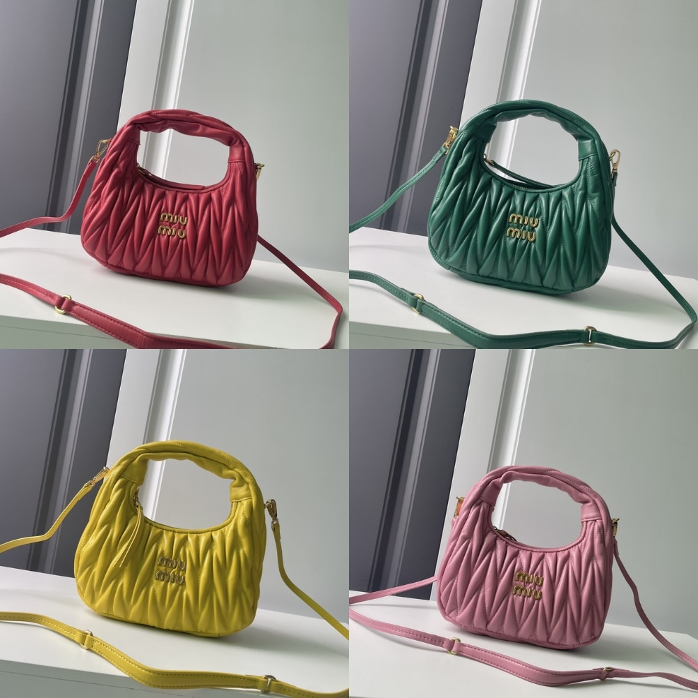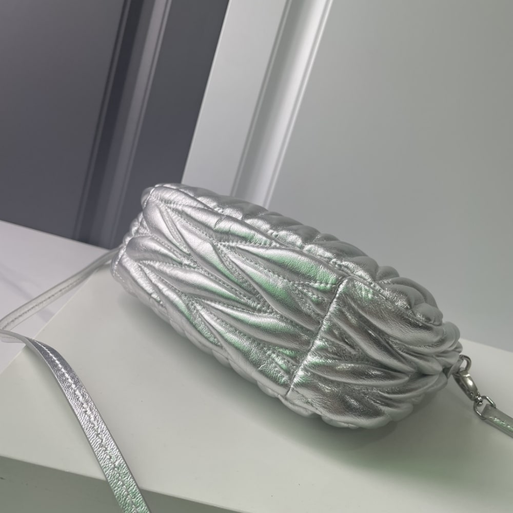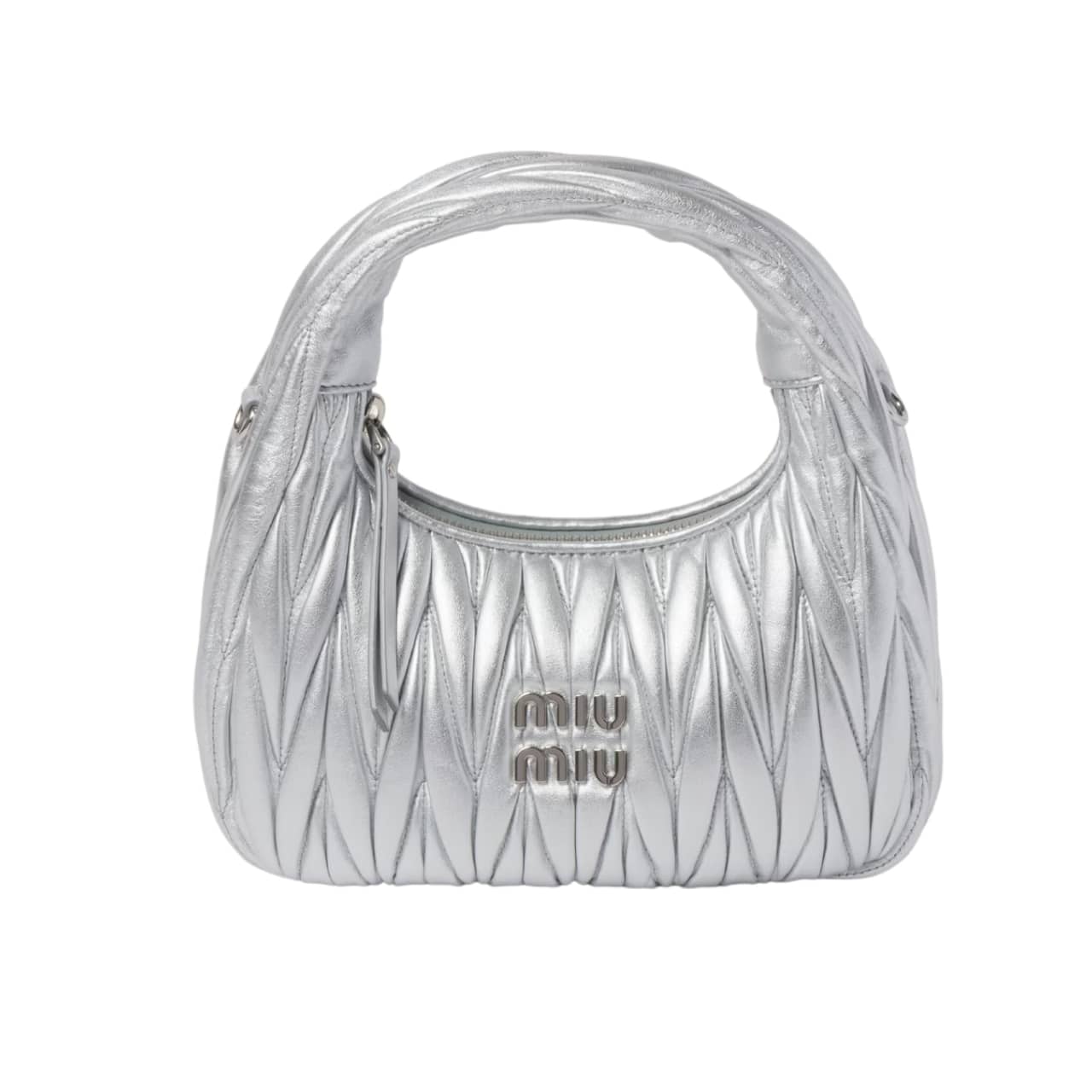 MiuMiu Wander Matelassé Nappa Hobo Bag Silver 23Cm 5BC125 AN88 F0118 V OOY