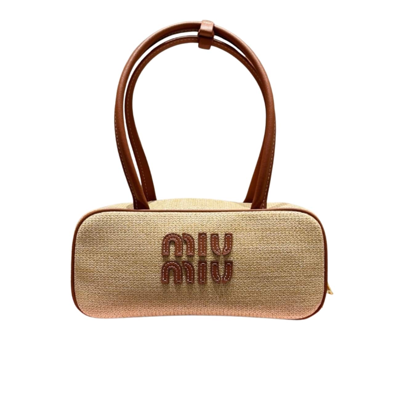 MiuMiu Women’s Canvas And Leather Bag Natural Beau/ 27 x 12 cm/ 10.6 x 4.7 inches