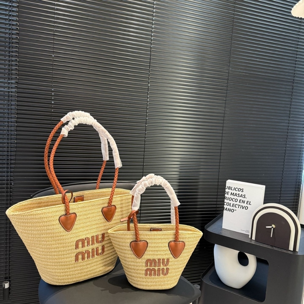 MiuMiu Woven Fabric Tote Bag Beige And Cognac 16Cm 5BG273 2DDH F0A5T V OOO