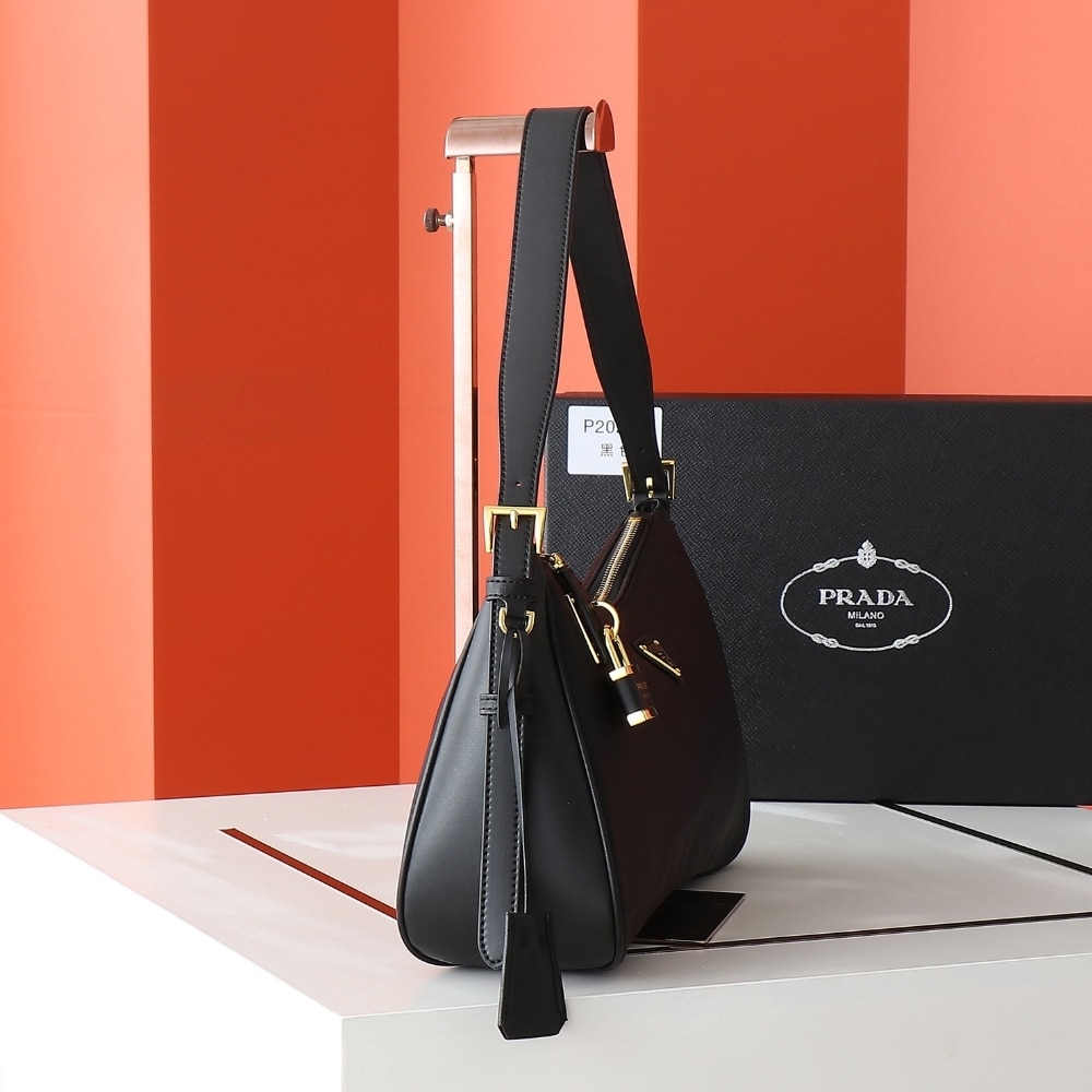 Prada Aimée Large Re Nylon Shoulder Bag With Padlock Black 34Cm 1BC232 2C8Q F0002 V ODO