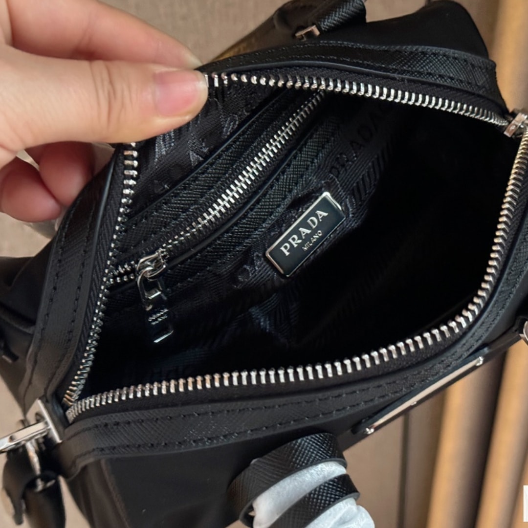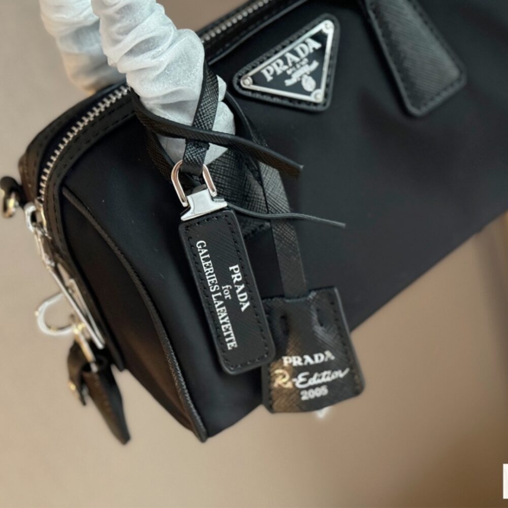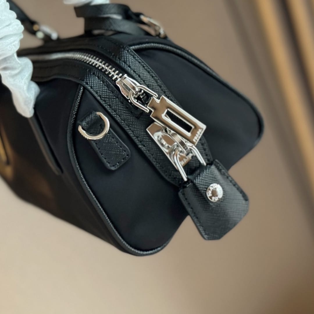 PRADA BAULETTO RECYCLED NYLON SHOULDER BAG BLACK 21CM