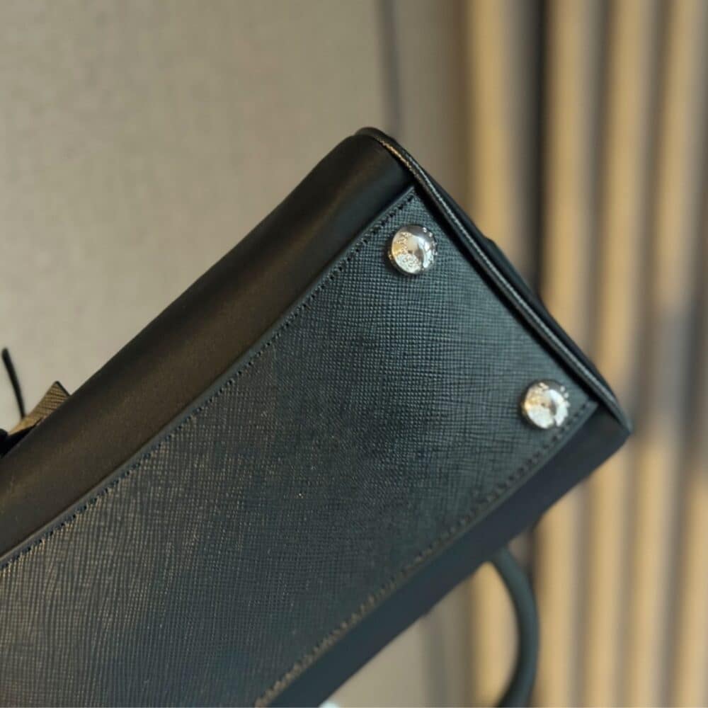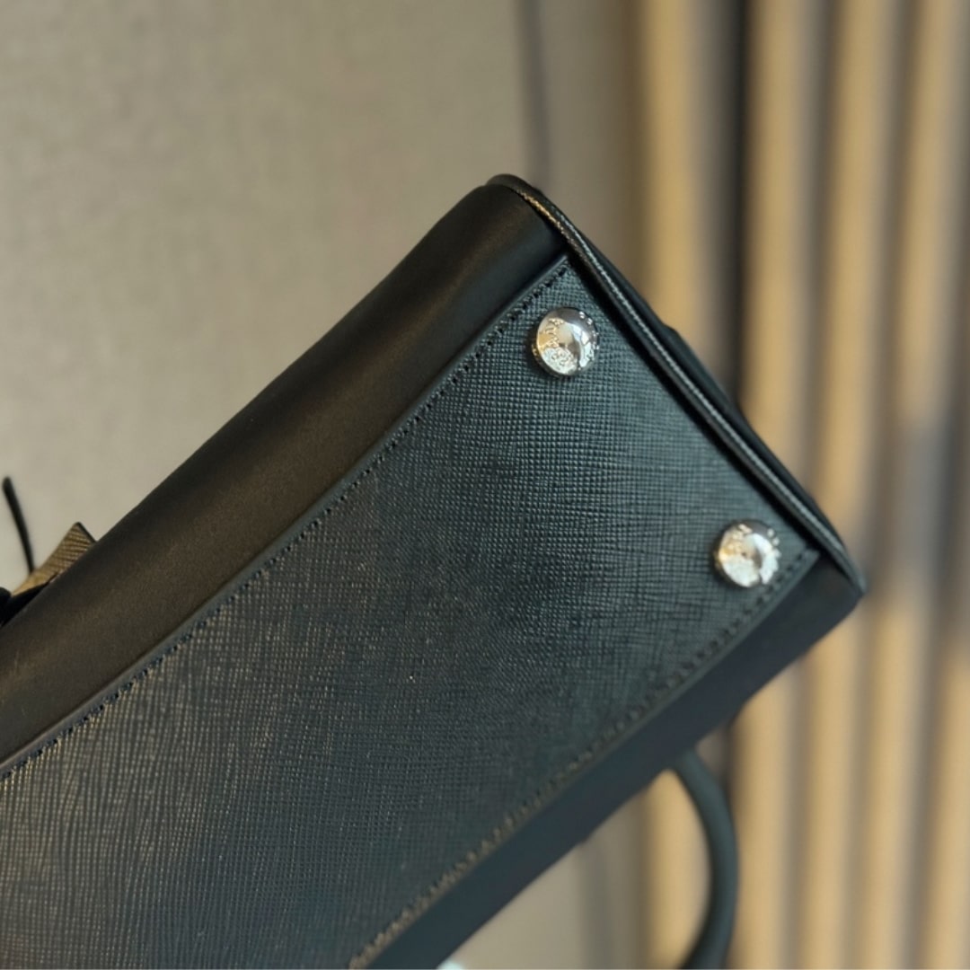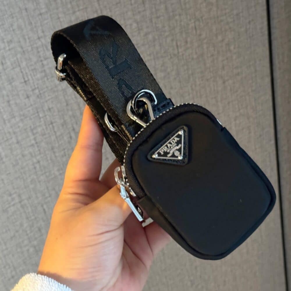 PRADA BAULETTO RECYCLED NYLON SHOULDER BAG BLACK 21CM
