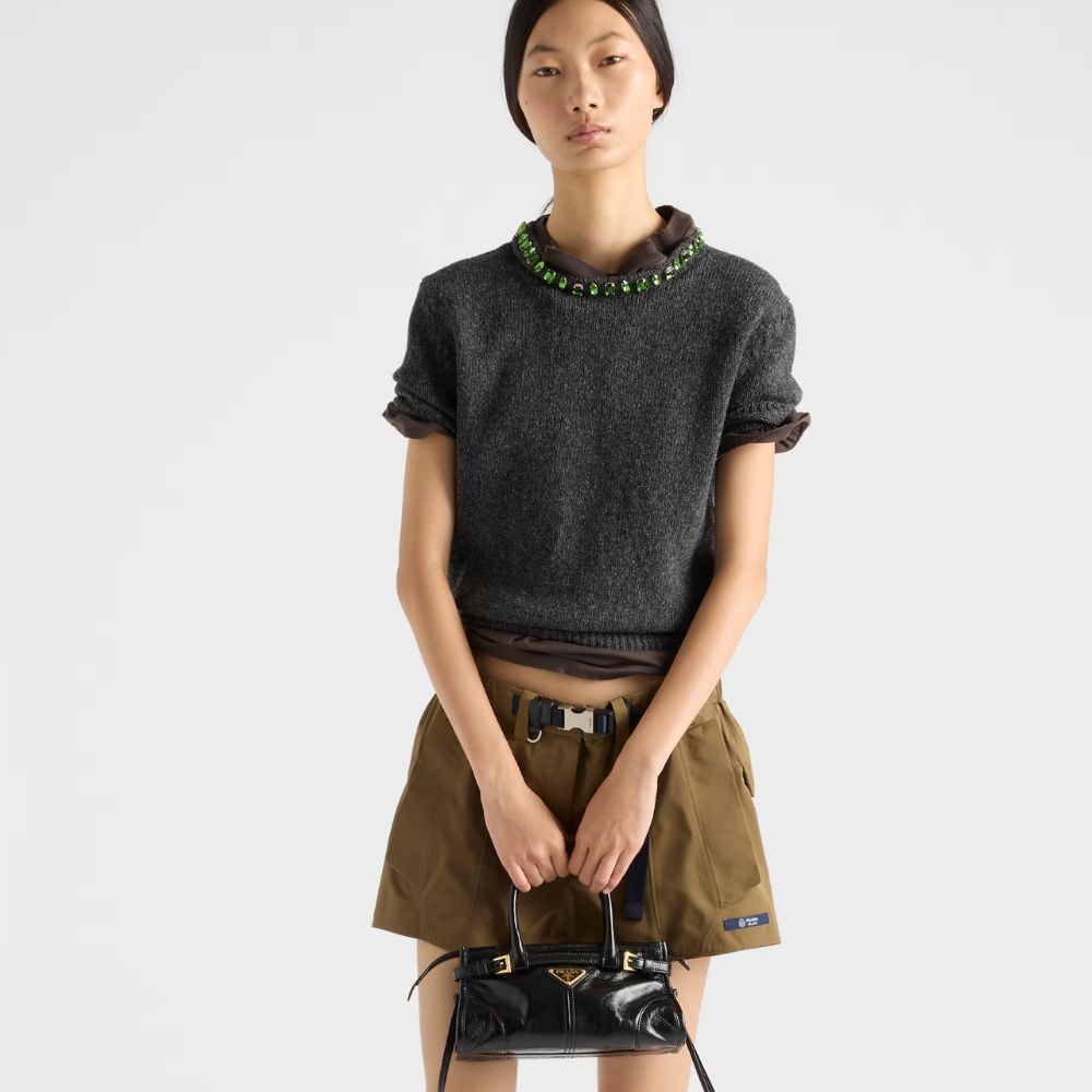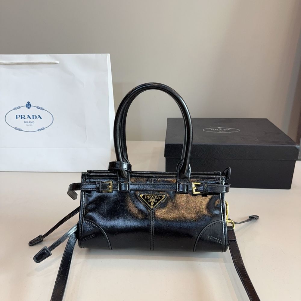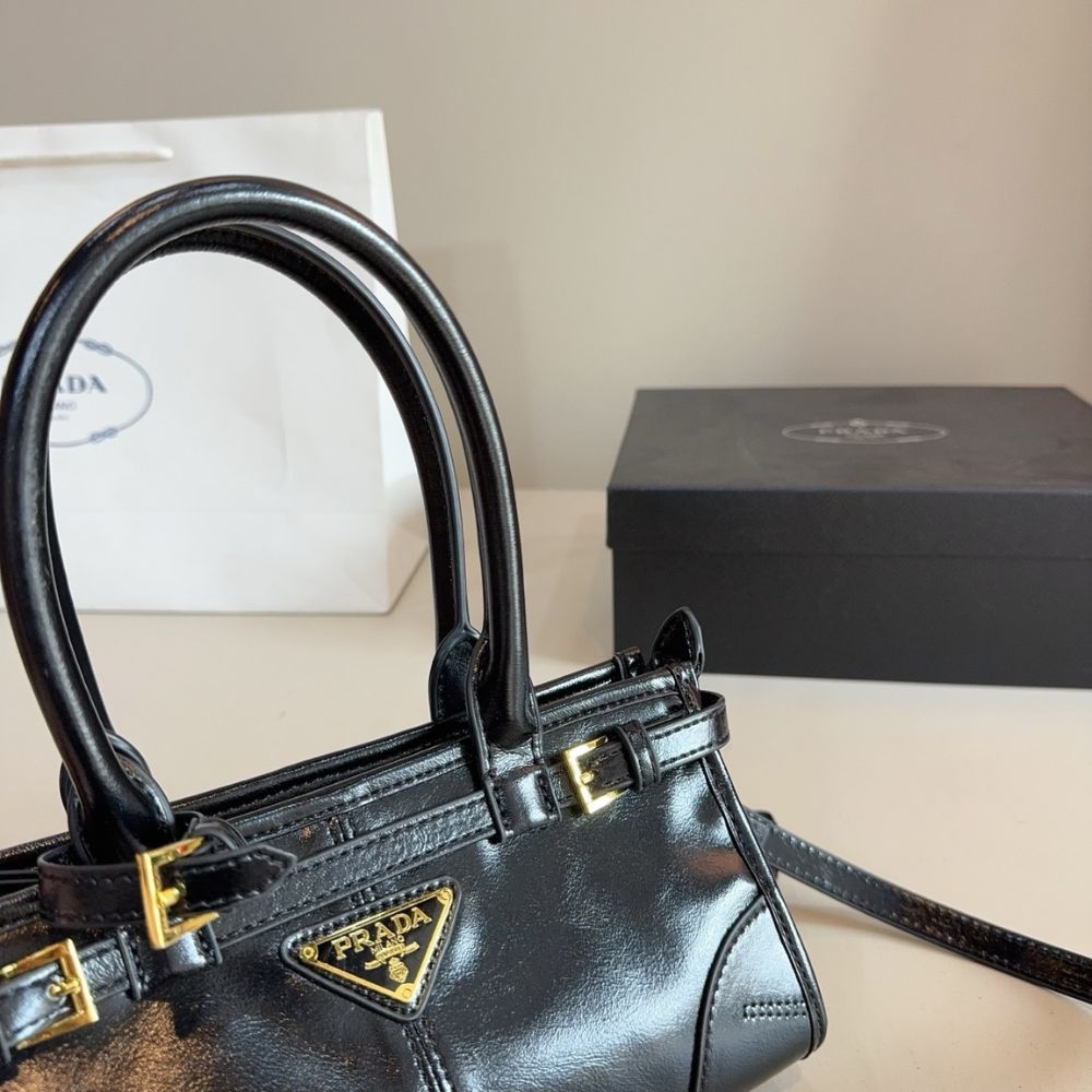 A symbol of innovation, unconventional spirit and a timeless attitude, the Bonnie bag expresses Prada’s dialogue with modernity. The style is presented in a versatile and compact mini format enriched with distinctive metal buckles and laces on the sides. Soft leather with a liquid, glossy finish gives the design unmistakable style.