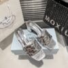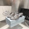 - Prada sandals in metallic spazzolato calf leather with brushed triangular studs