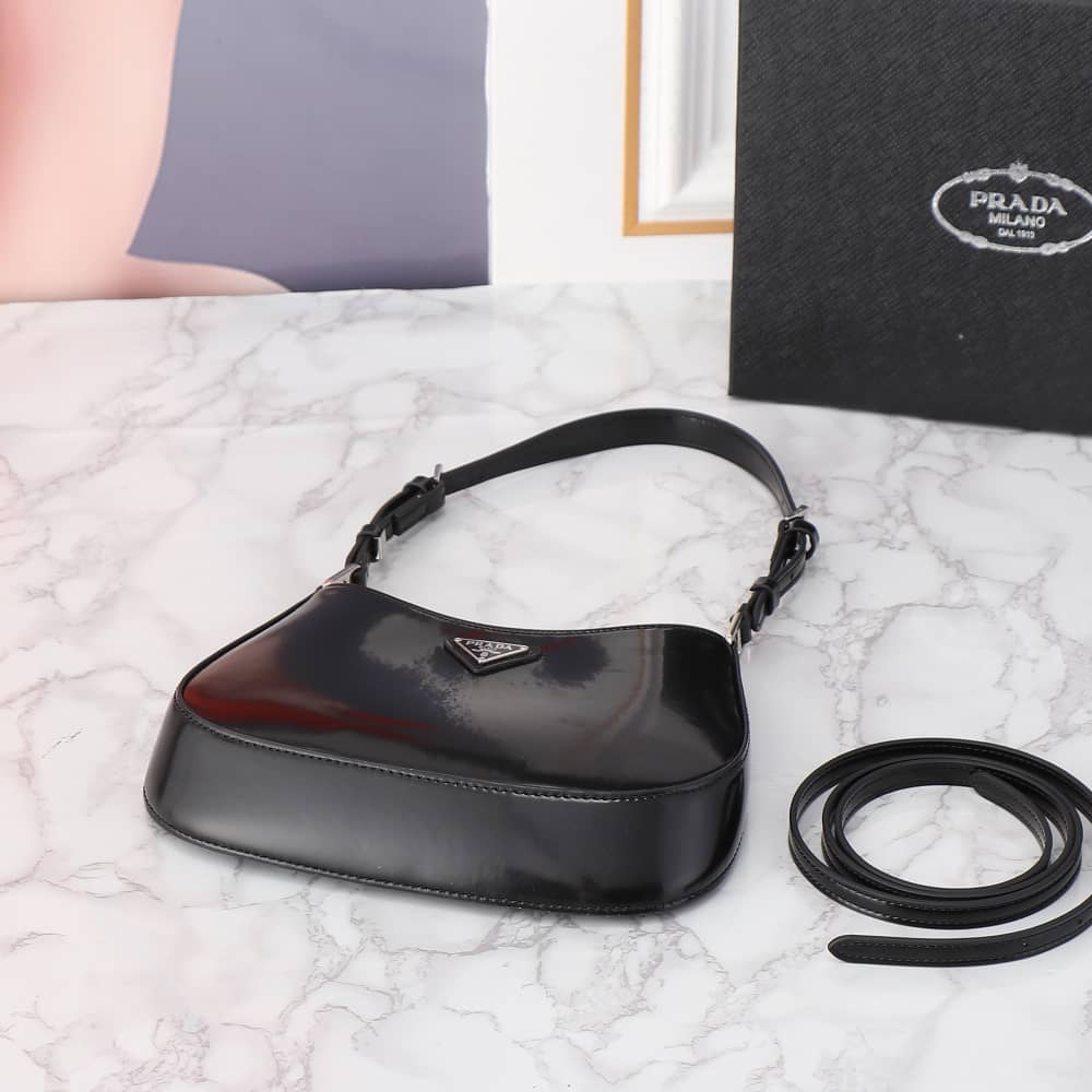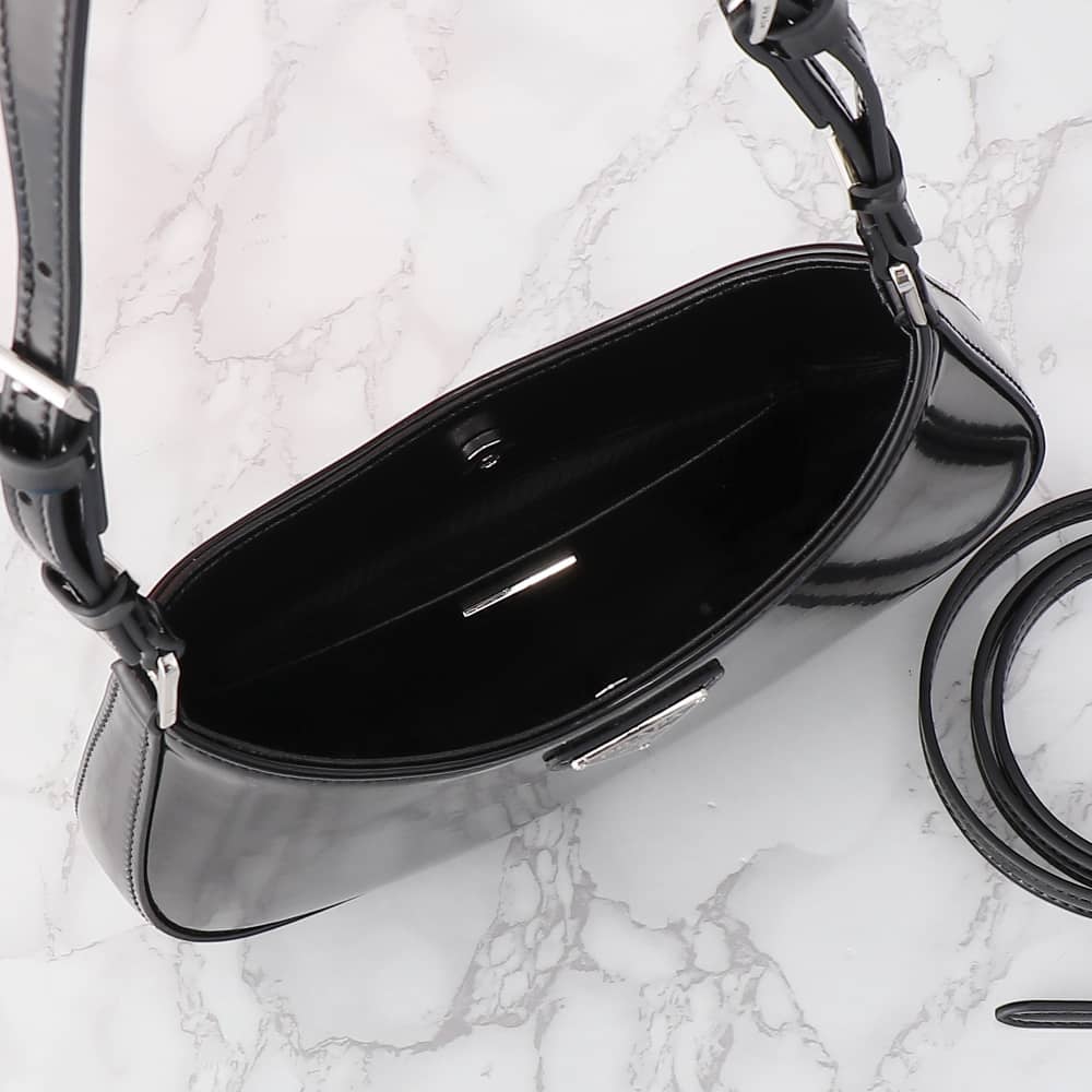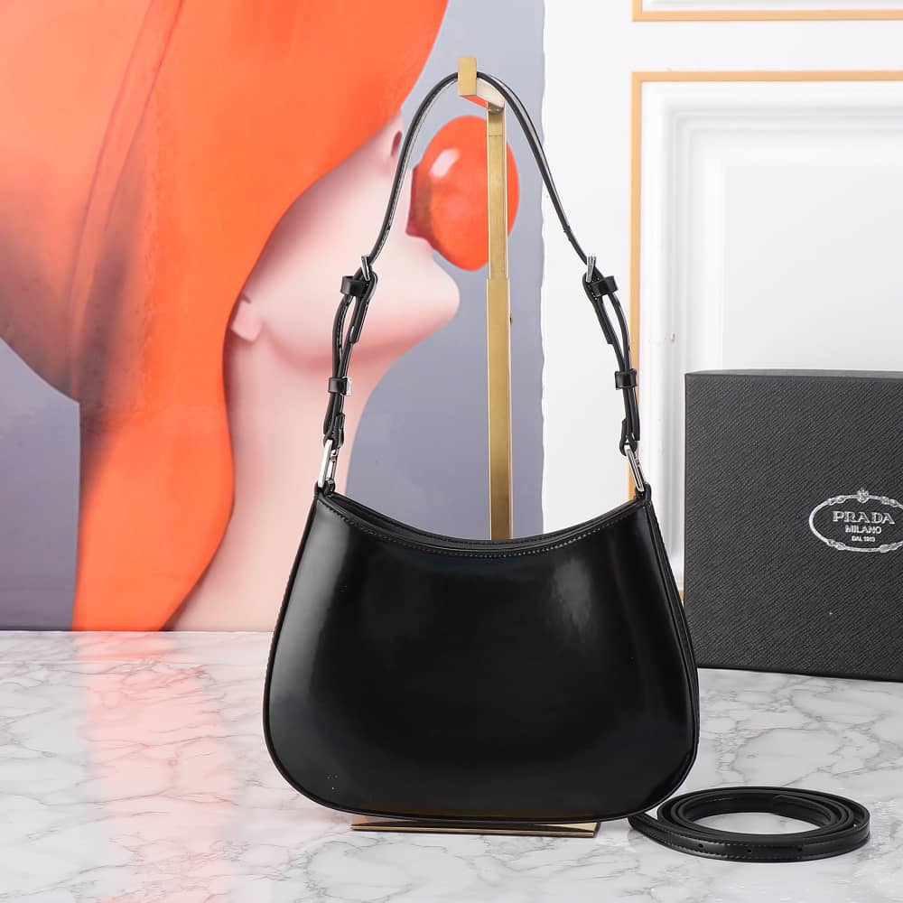 Prada Cleo Brushed Leather Shoulder Bag Black 1BC499 ZO6 F0002 V OOO / 27Cm / 10.6 inches