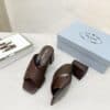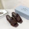PRADA CROSSOVER NAPPA LEATHER SANDALS IN DARK BROWN