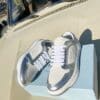 Prada District Leather Sneakers White Sliver 1E790M 3Lj6 F0J36