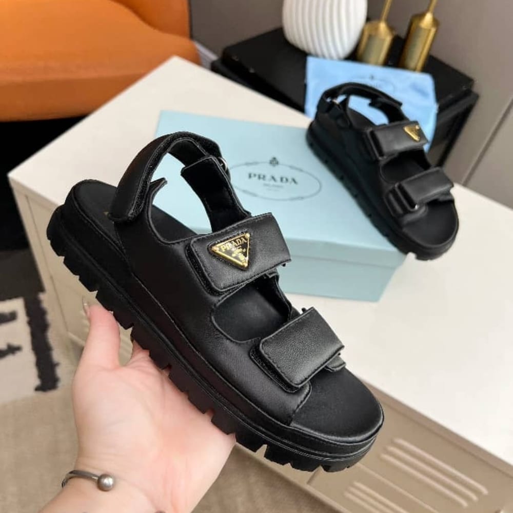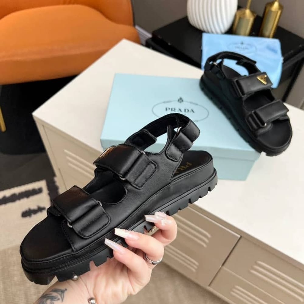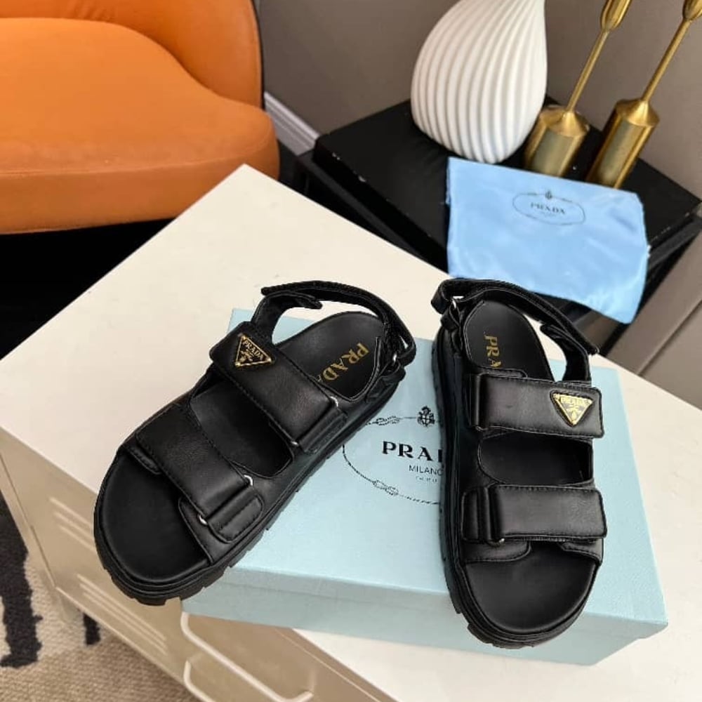 PRADA FLAT NAPPA LEATHER SANDALS BLACK 1X416N 038 F0002 F 020