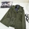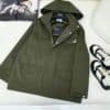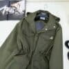 - PRADA Hooded Windbreaker in green features a zipper and pockets , the garment is decorated with the iconic enameled metal triangle logo