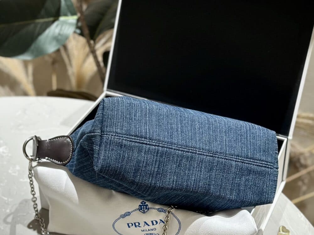 PRADA JEANS RING SHOULDER BAG DENIM BLUE 25CM
