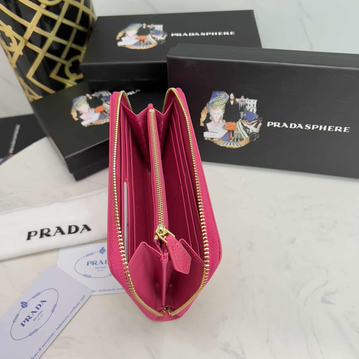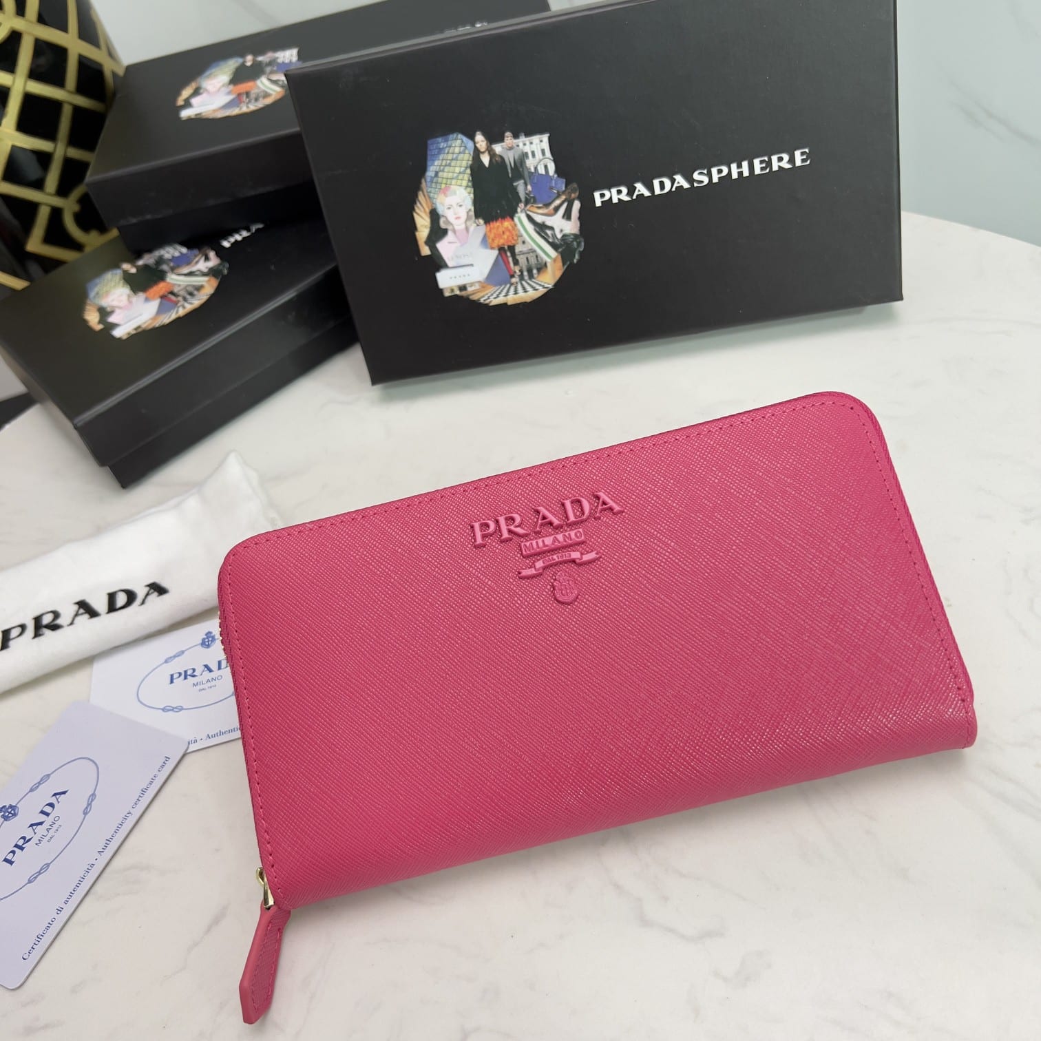 PRADA LARGE SAFFIANO LEATHER WALLET FULL PINK 19CM 1ML506 QWA F0505