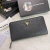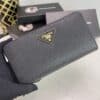 Prada Large Saffiano Triangle Zip Around Long Wallet Black 1ML506 QHH F0002 / 19cm / 7.5 inches