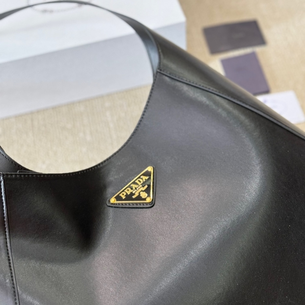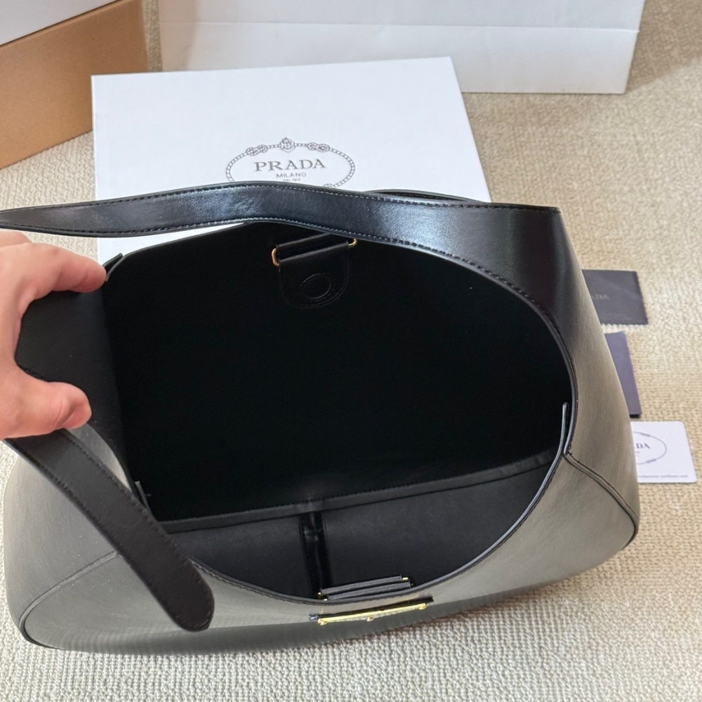 PRADA LARGE SHOULDER BAG WITH TOPSTITCHING BLACK 40CM 1BC181 2AIX F0002 V OOO