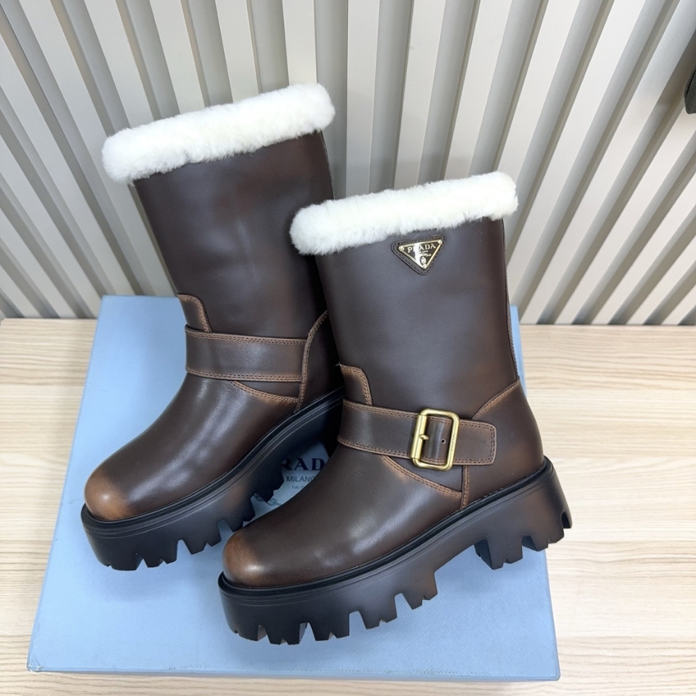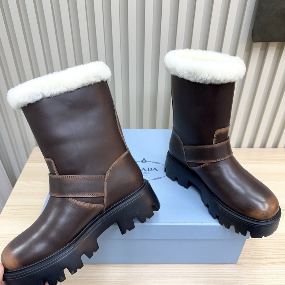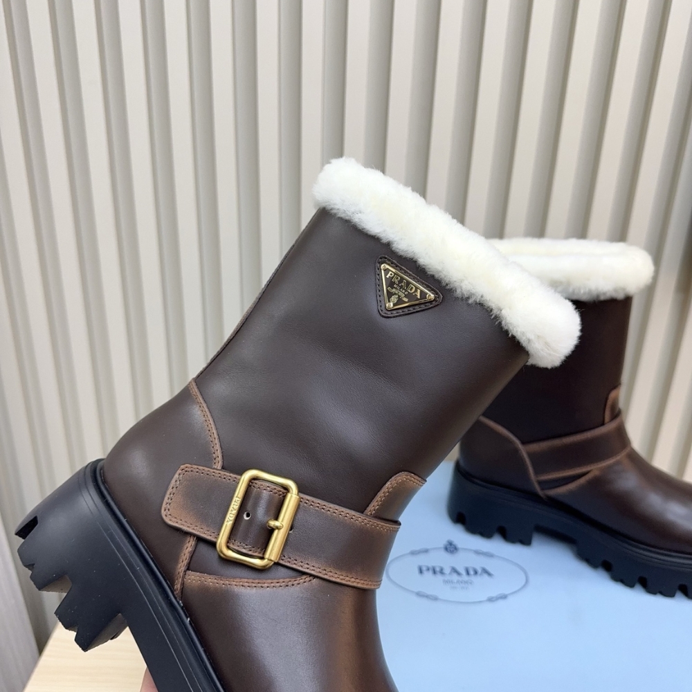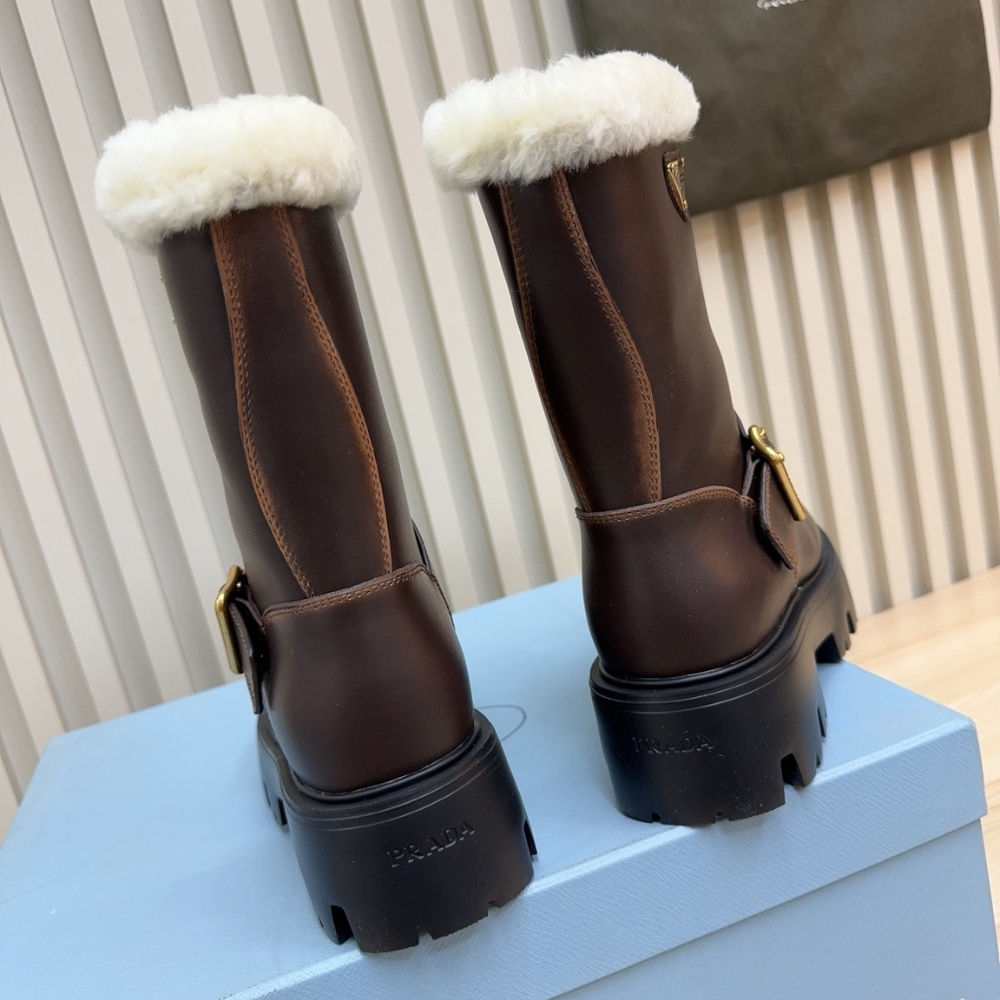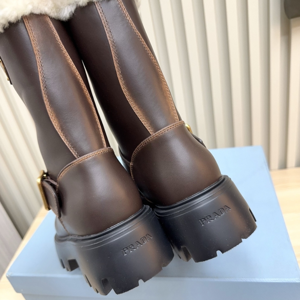 PRADA LEATHER AND SHEARLING BOOTIES COCOA BROWN 1U187O DFW F0324 F 050
