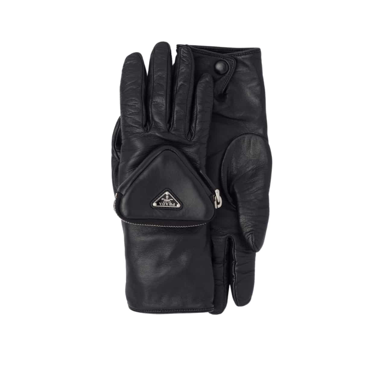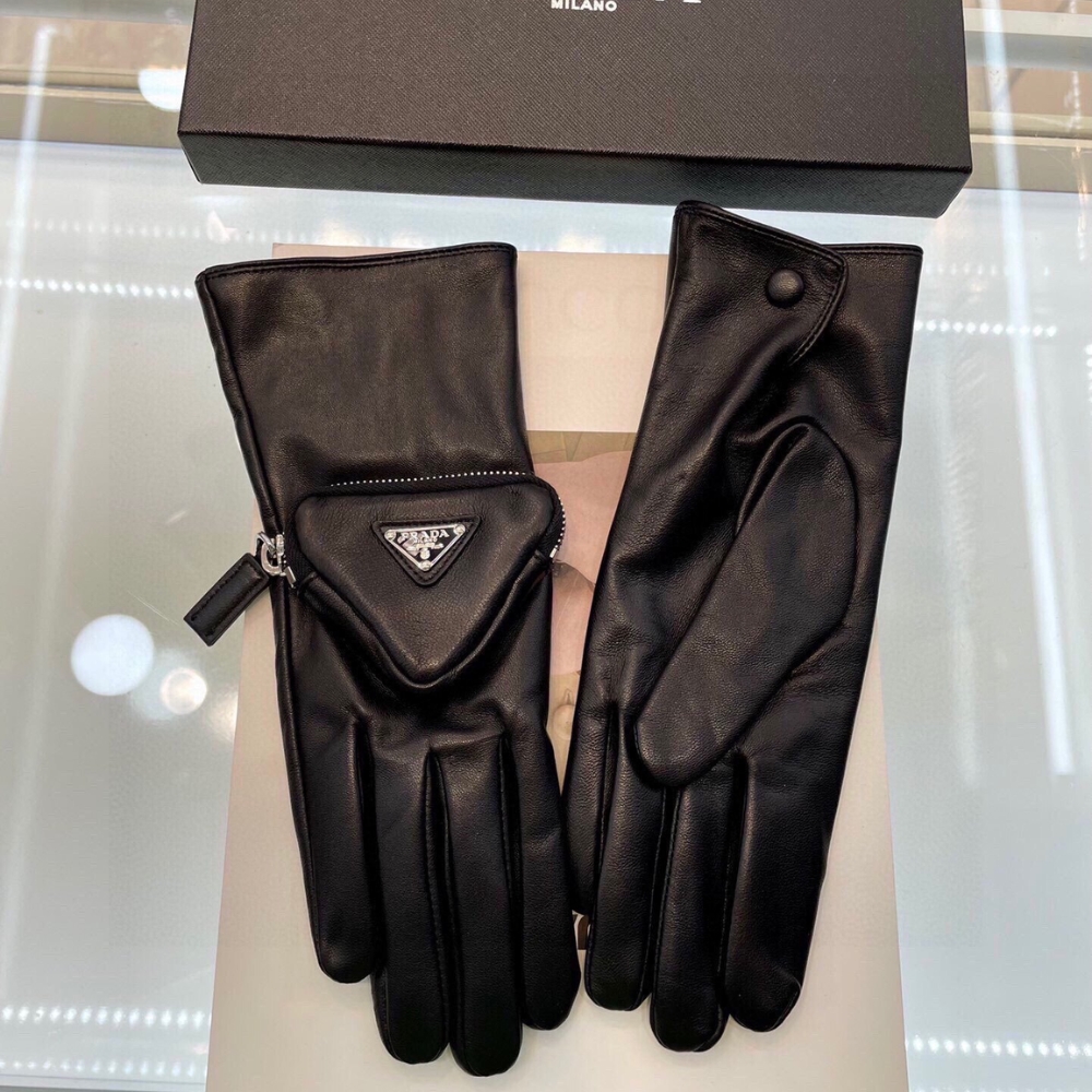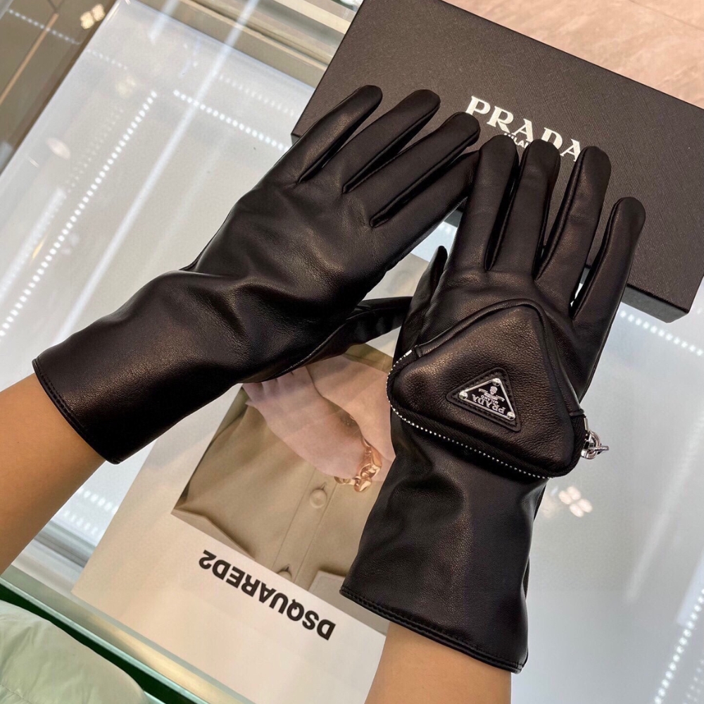 Prada Leather Gloves Triangle Logo Nylon In Black 1GG141 2DWZ F0002