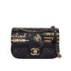 - Logo engraved on the enameled metal triangle clasp on the flap