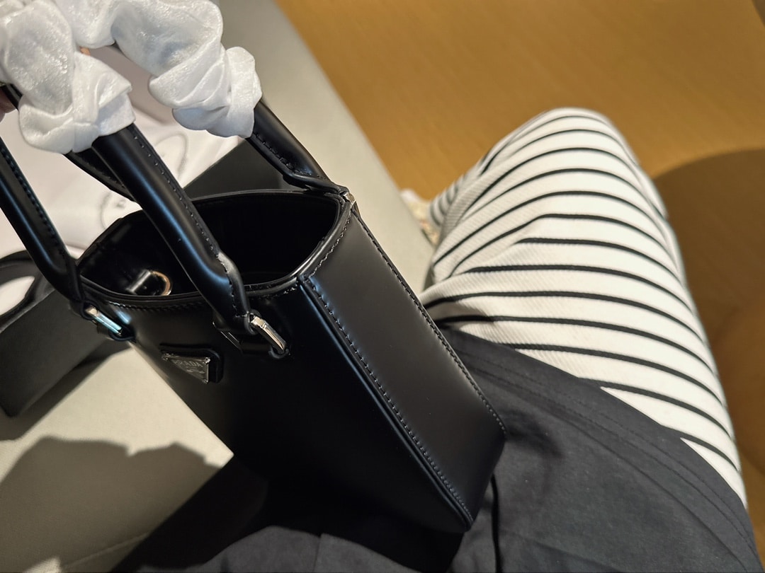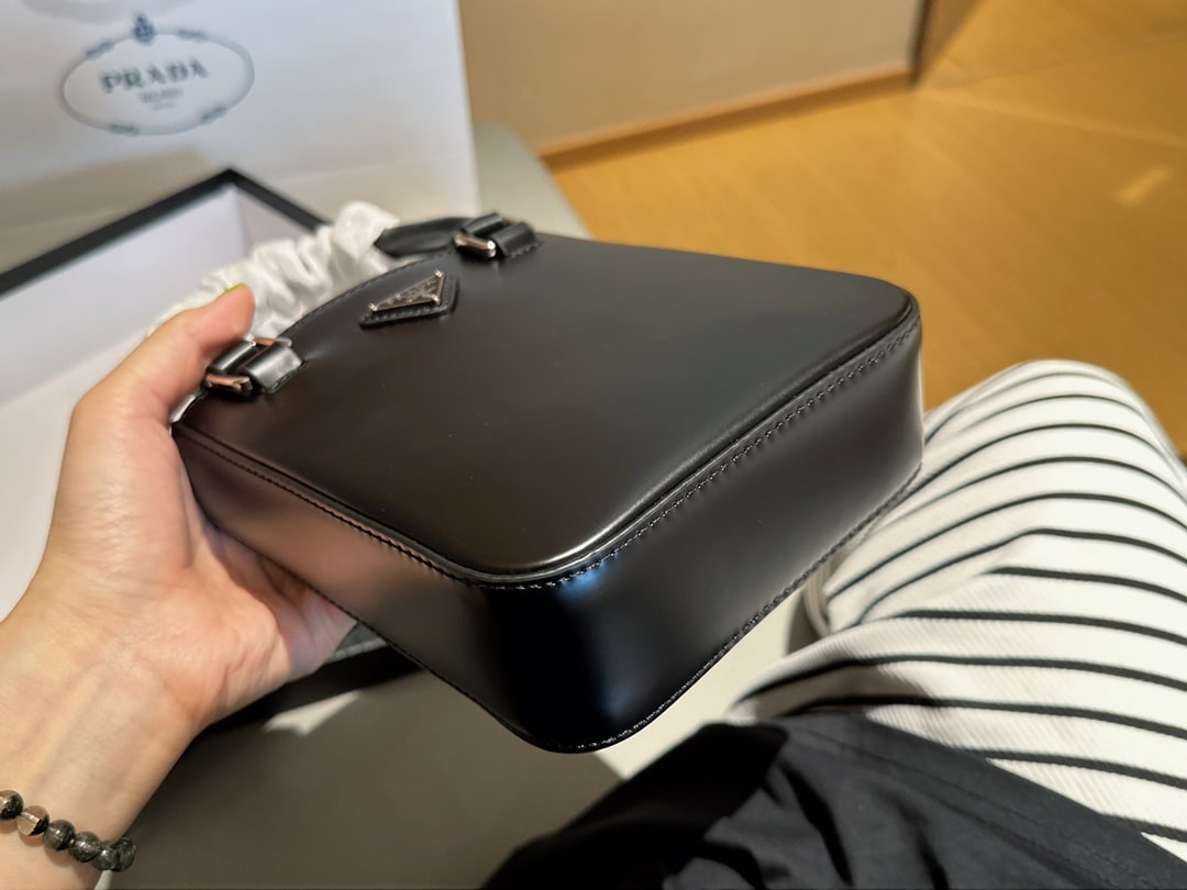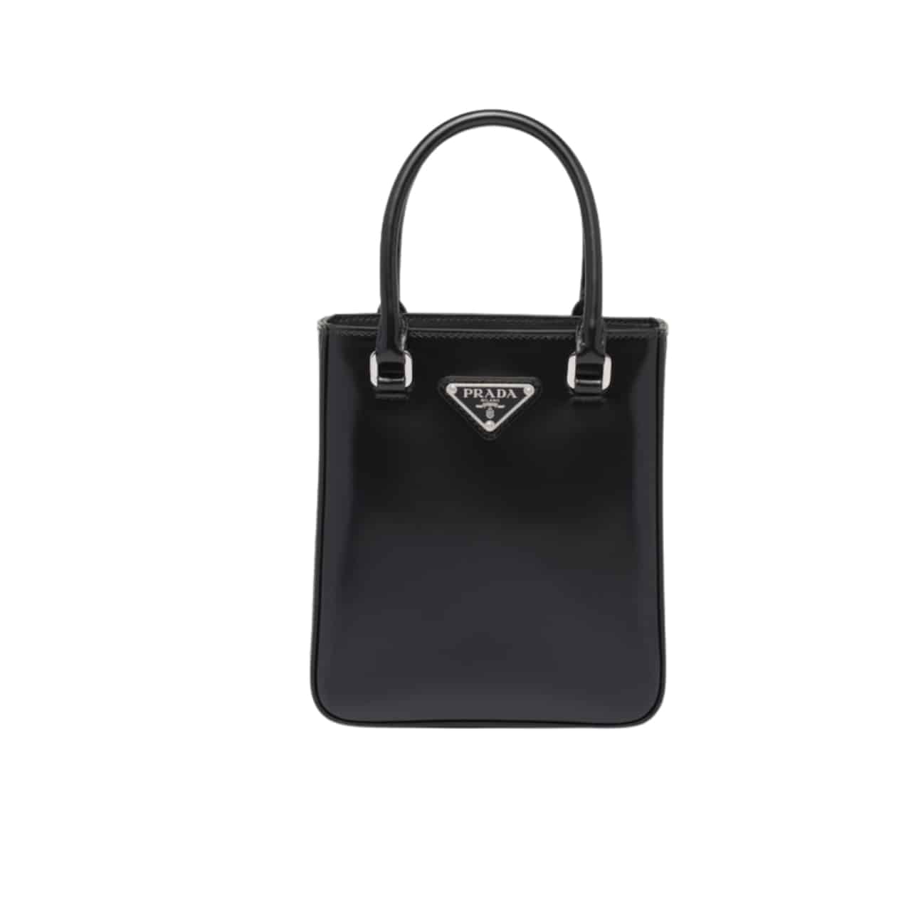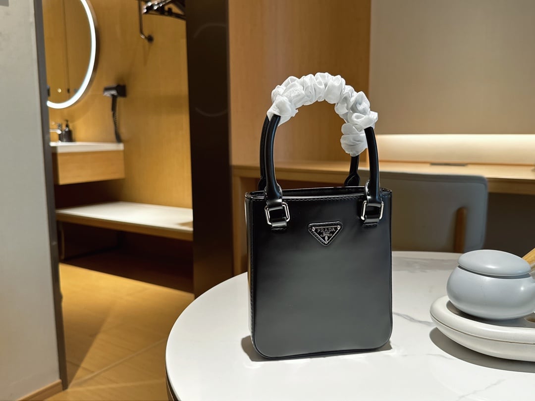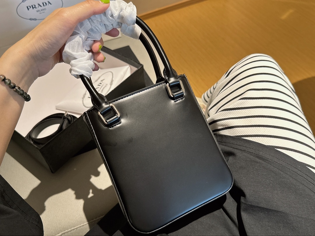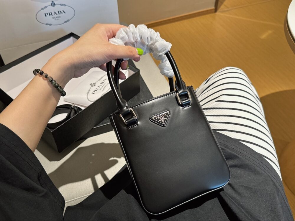 Prada//Logo Embellished Leather Cross Body Bag//Black//15cm