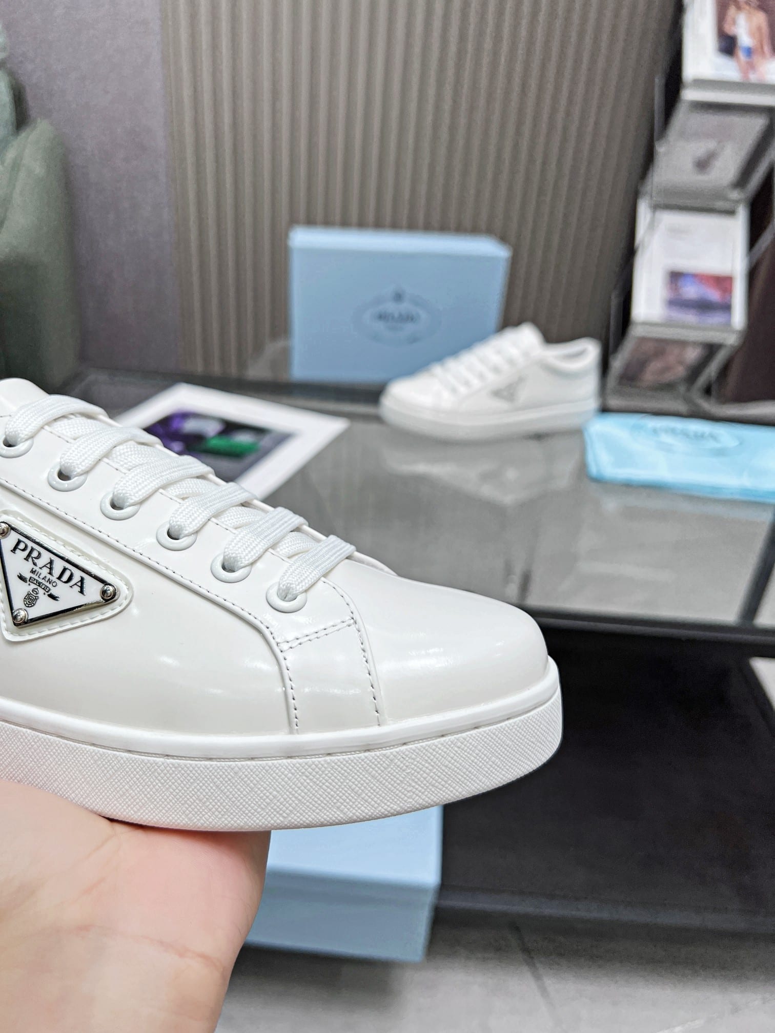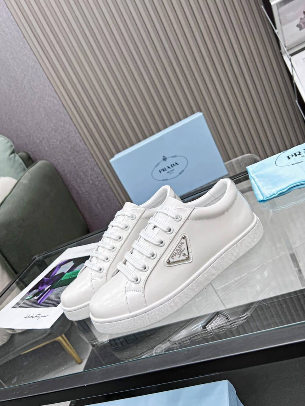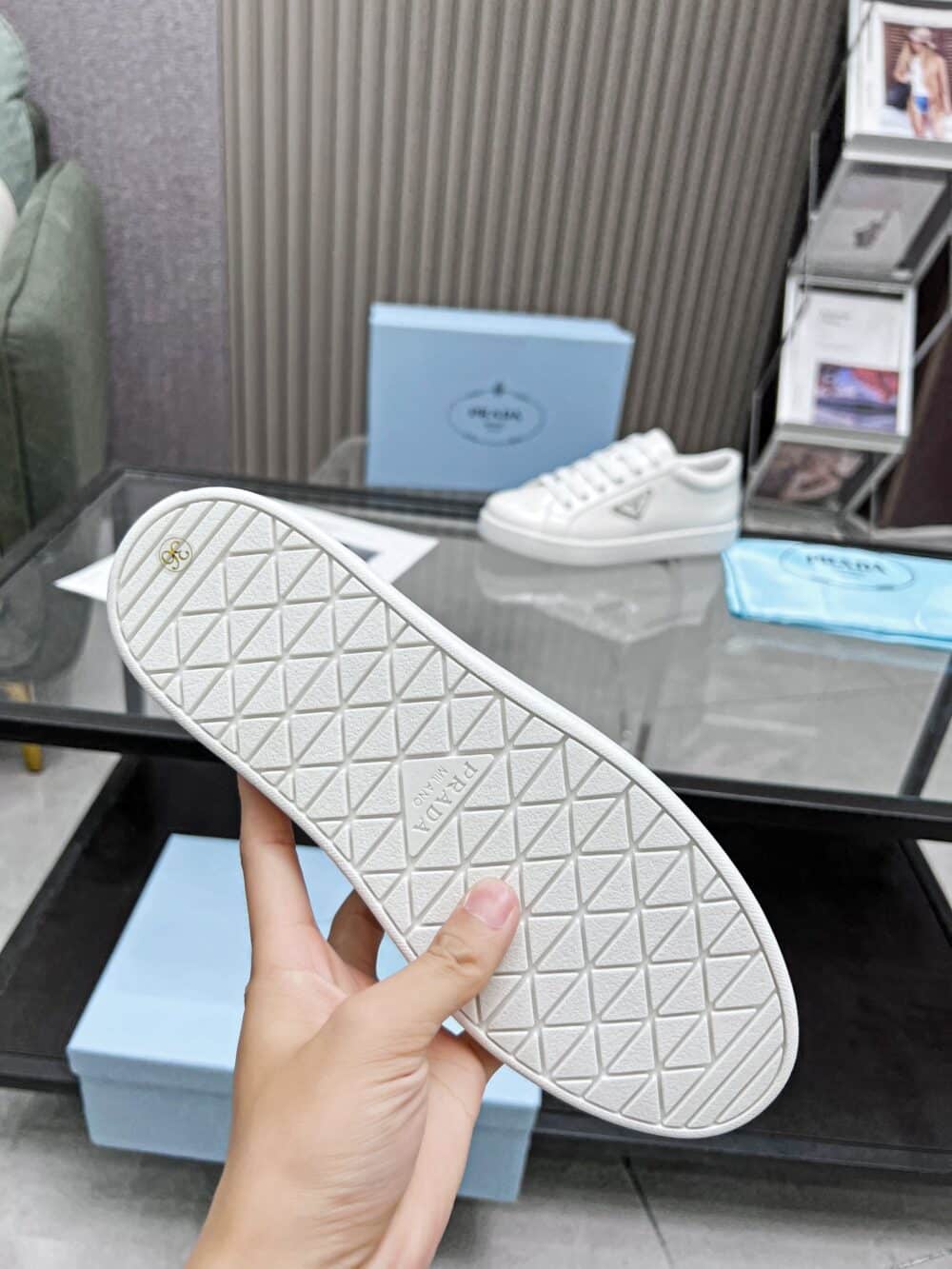 PRADA LOGO SNEAKER IN BRUSHED LEATHER WHITE