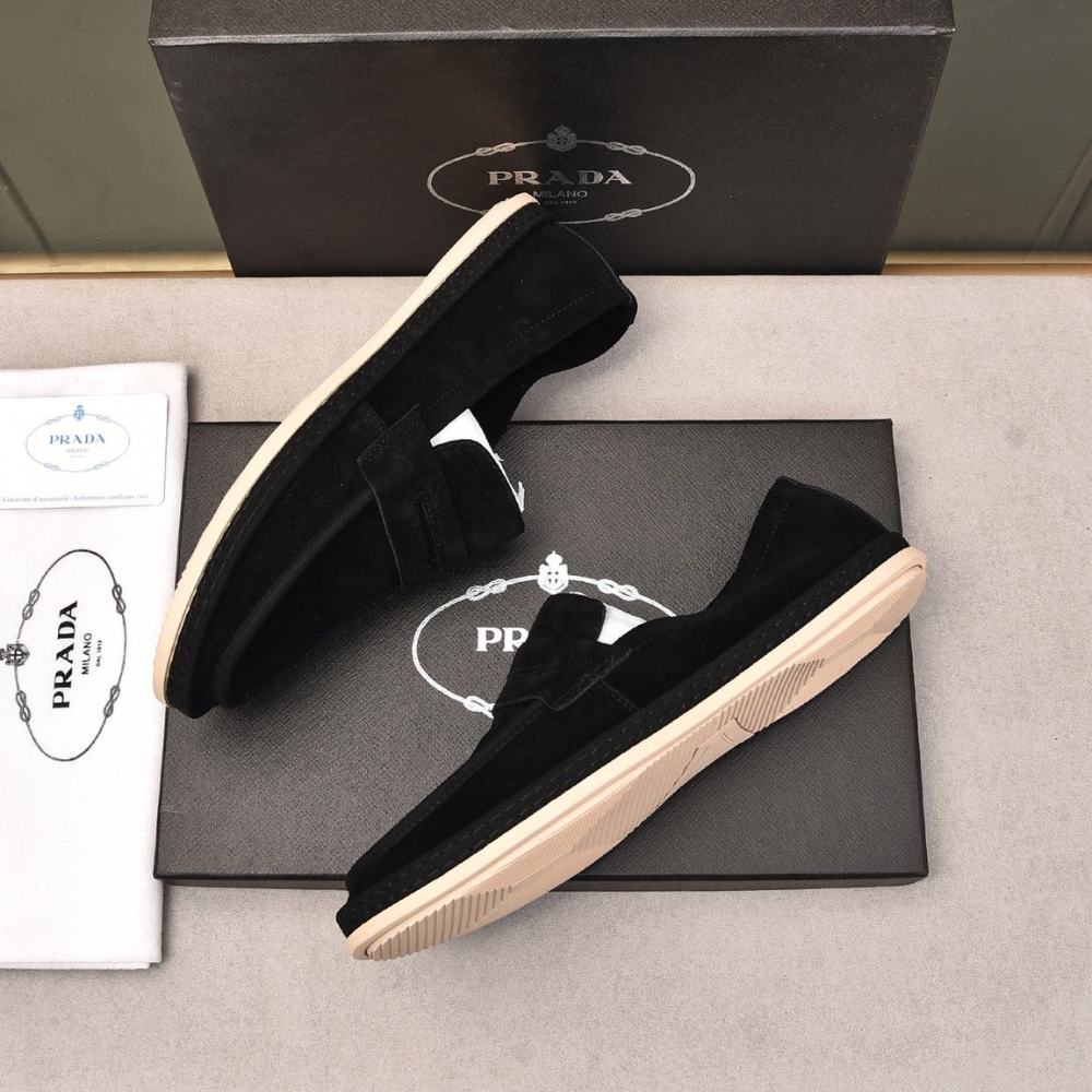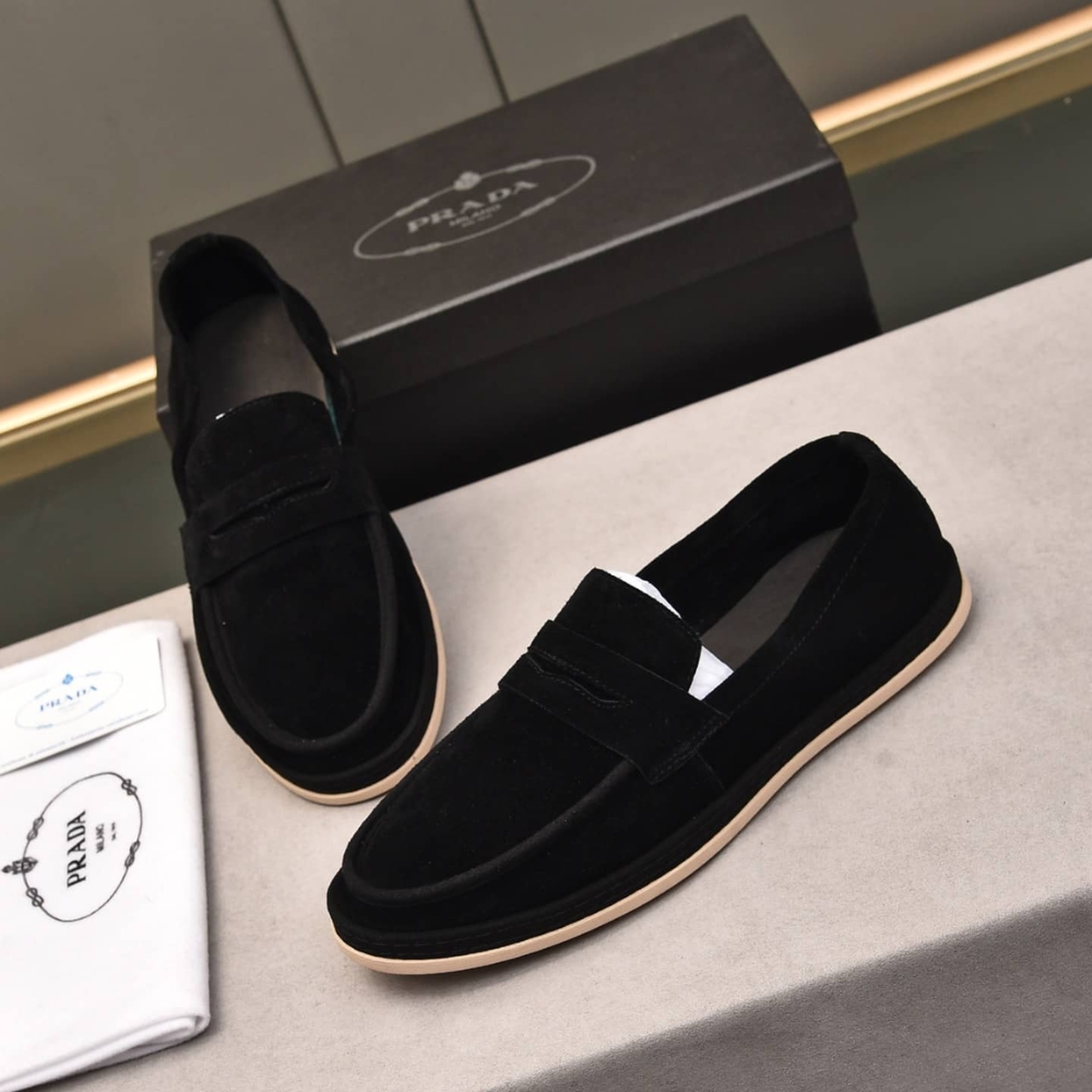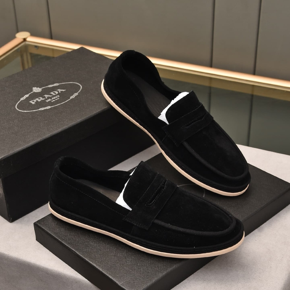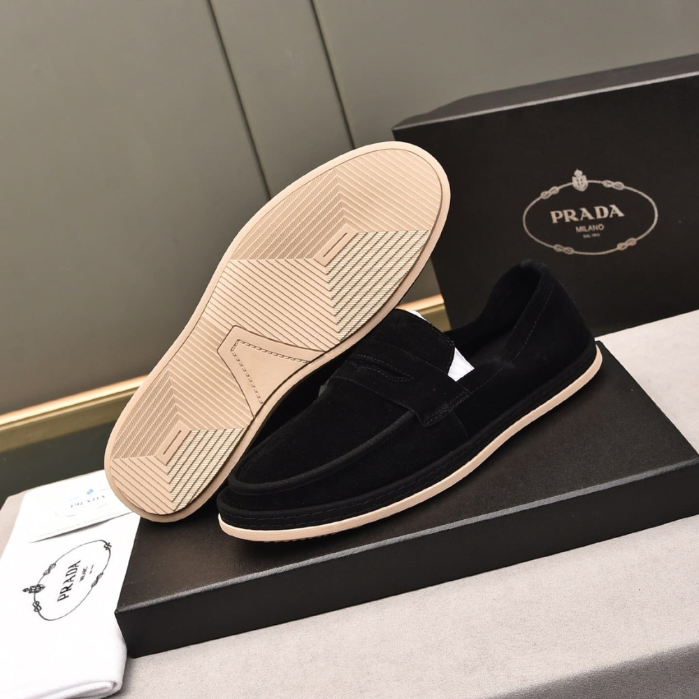 PRADA MEN’S SUEDE LOAFERS LEATHER BLACK