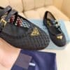 These ballerinas with a feminine silhouette and iconic details embody refined, timeless style. The shoes, reinterpreted with a macramé motif on mesh fabric, acquire a unique, delicate charm.