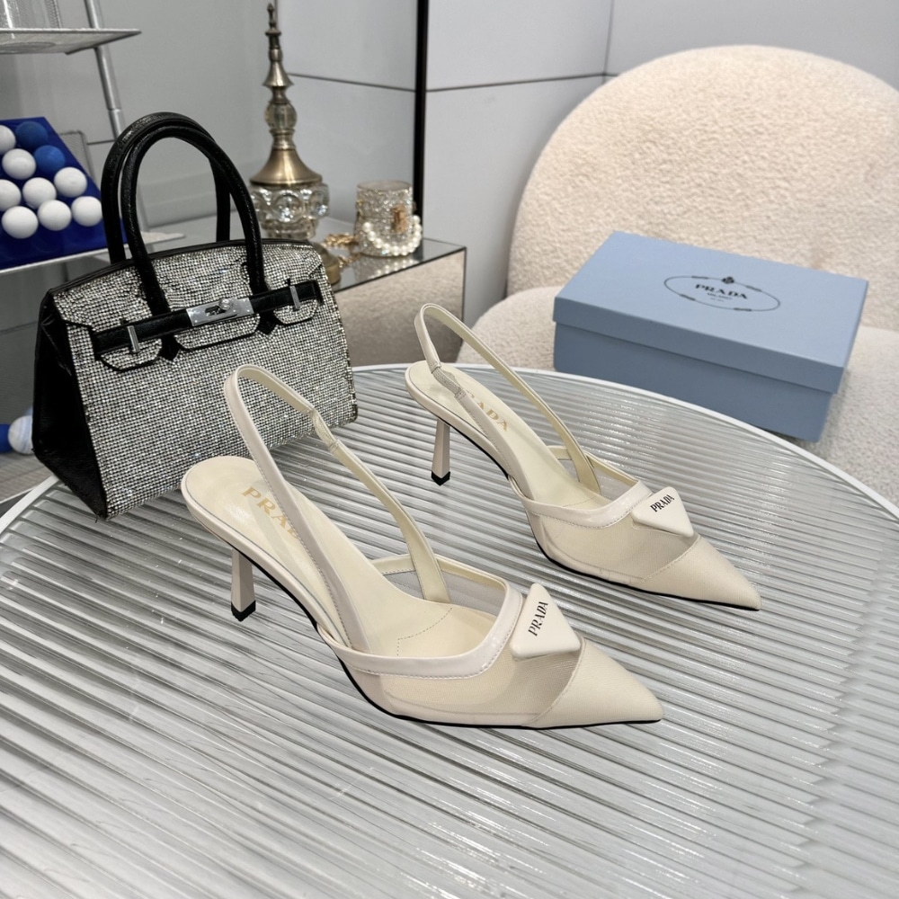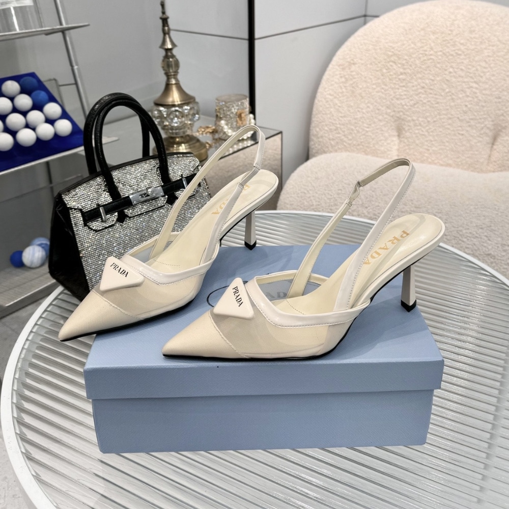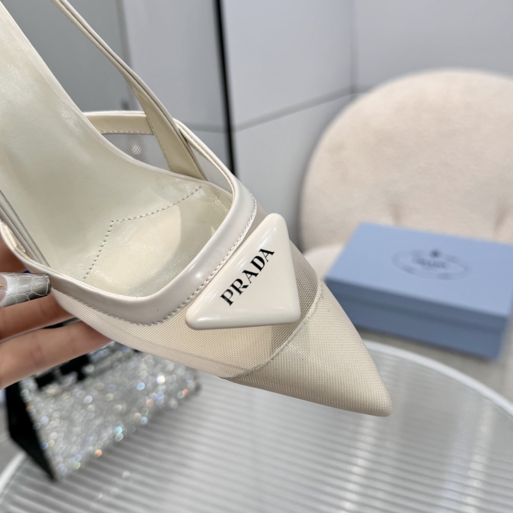PRADA MESH FABRIC SLINGBACK PUMPS WHITE 1I891N 099 F0009 F 075