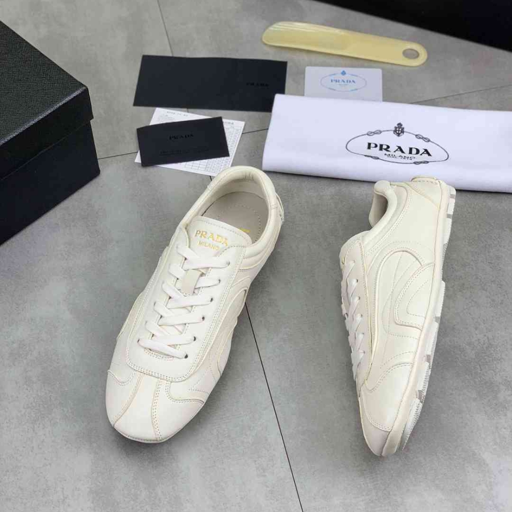 Prada Montecarlo Re Edition 2005 Antiqued Nappa Leather Sneakers Chalk White 4E1165 EFX F0K74 F G000
