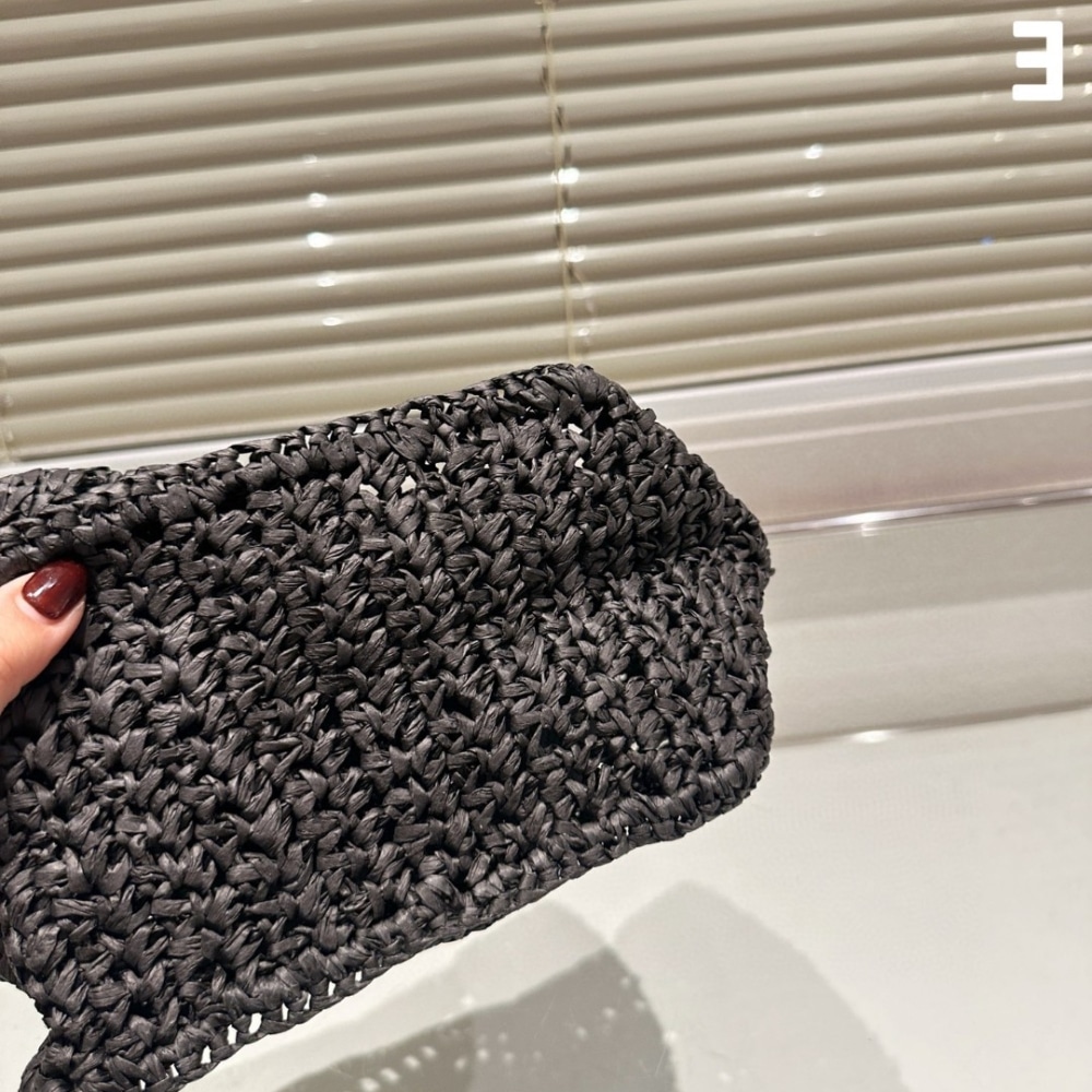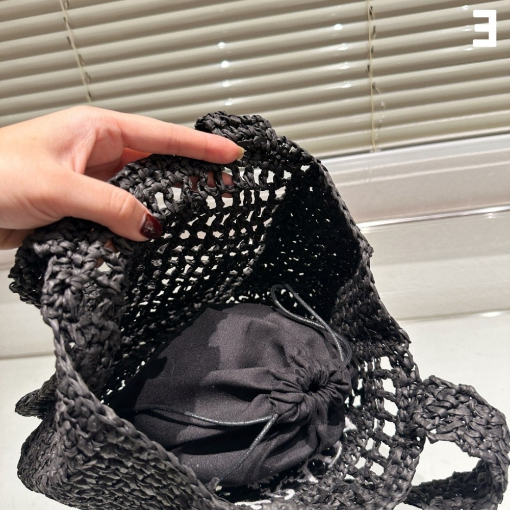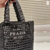 Prada Natural Raffia Logo Tote Black 1BG444 2A2T F0002 18Cm / 7.1 inches