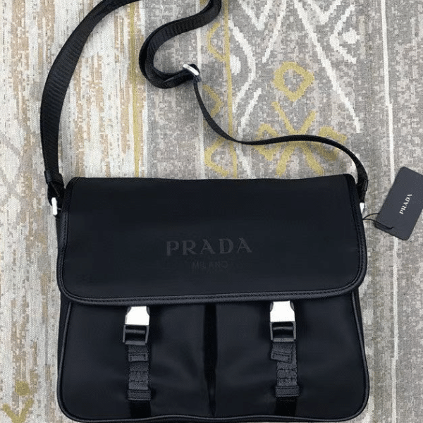 PRADA NYLON MESSENGER BAG BLACK 32CM