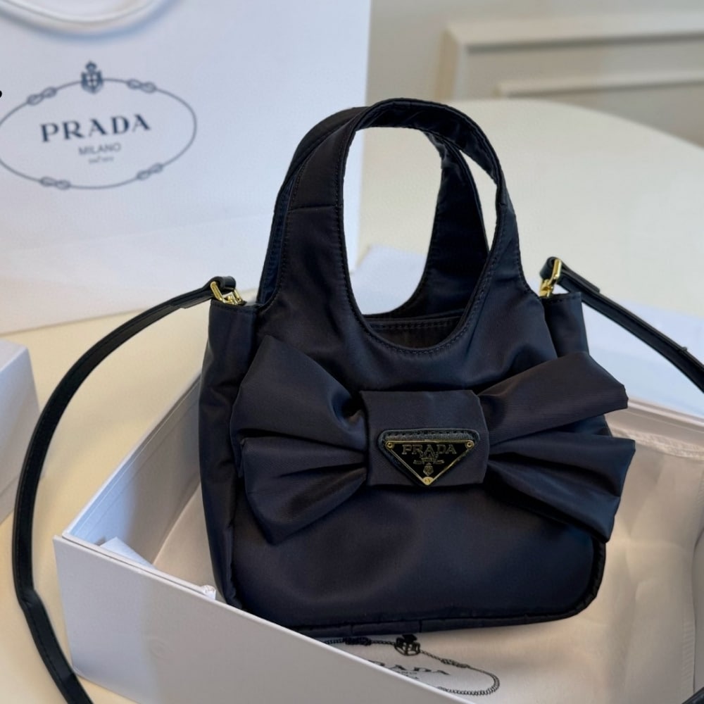 Prada Padded Re Nylon Mini Bag With Bow Black 19Cm 1BA359 RP0C F0002 V OXO