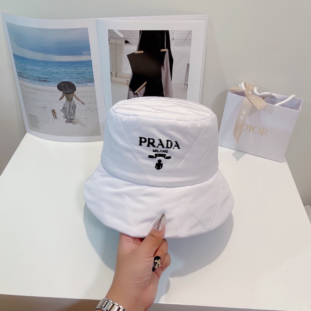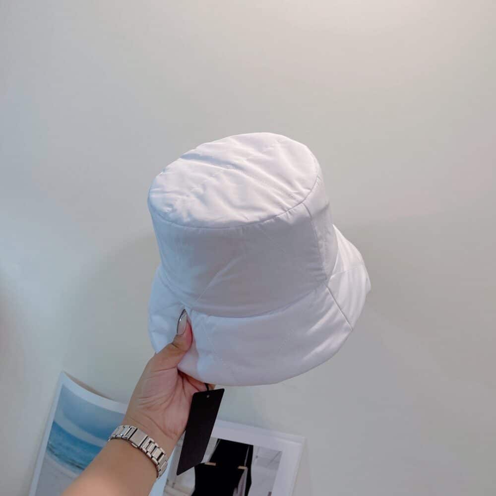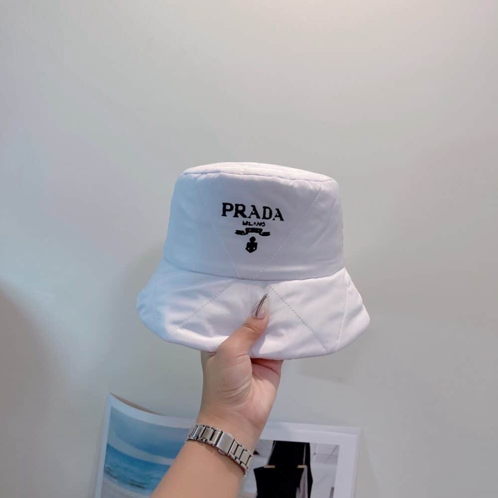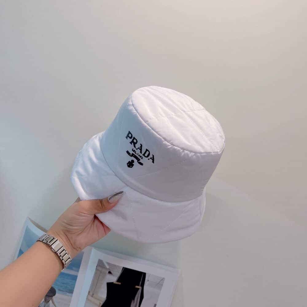 PRADA PADDED RENYLON BUCKET HAT WHITE