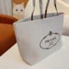 Prada//Raffia Tote Beach Bag New//Grey//37cm