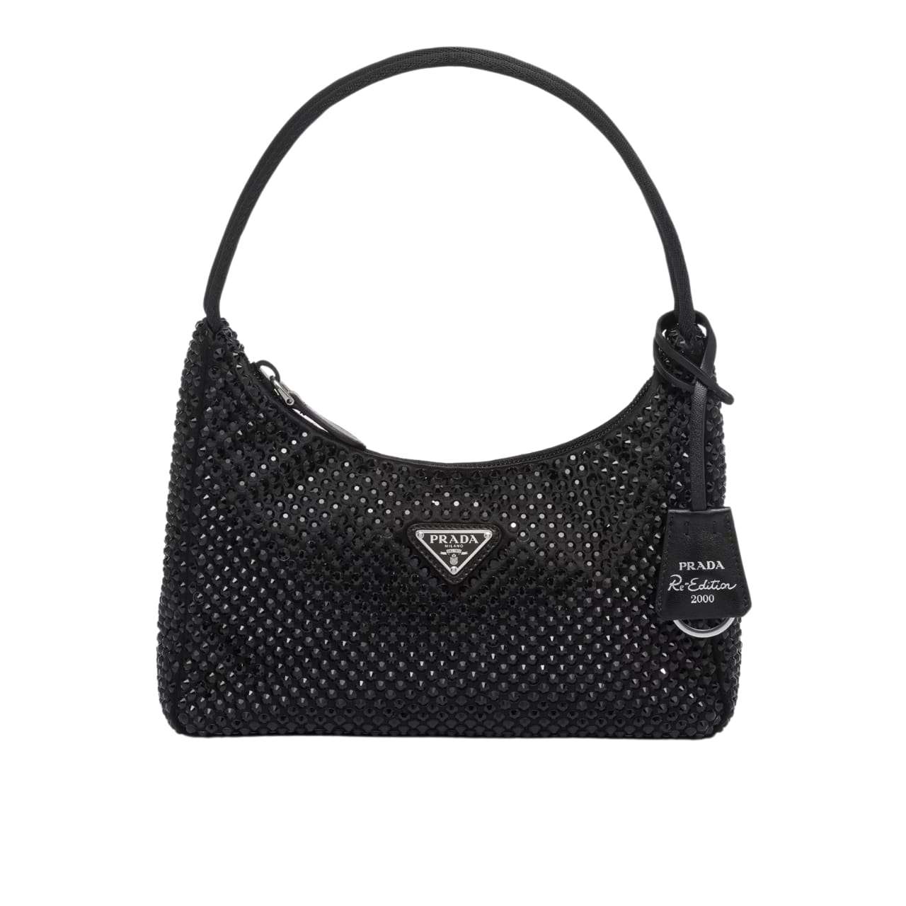 Prada Re Edition Satin Mini Bag With Crystals Black 21Cm 1BC515 2AWL F0002 V OOO