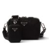 - Adjustable woven nylon tape and leather shoulder strap with removable pouch