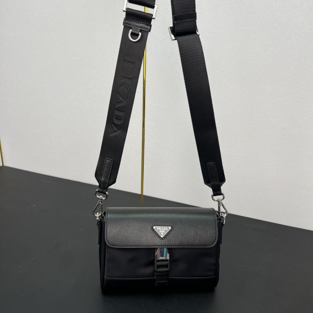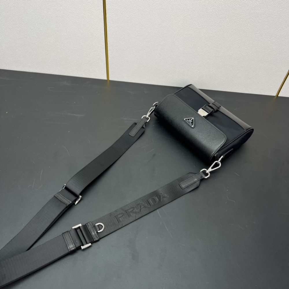 Prada Re Nylon And Saffiano Shoulder Bag Black 20Cm 2VD053 2DMH F0002 V OOO
