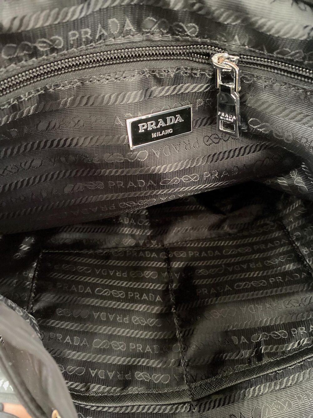 - A sustainable evolution of the industrial fabric that is a Prada hallmark, and Saffiano leather details.