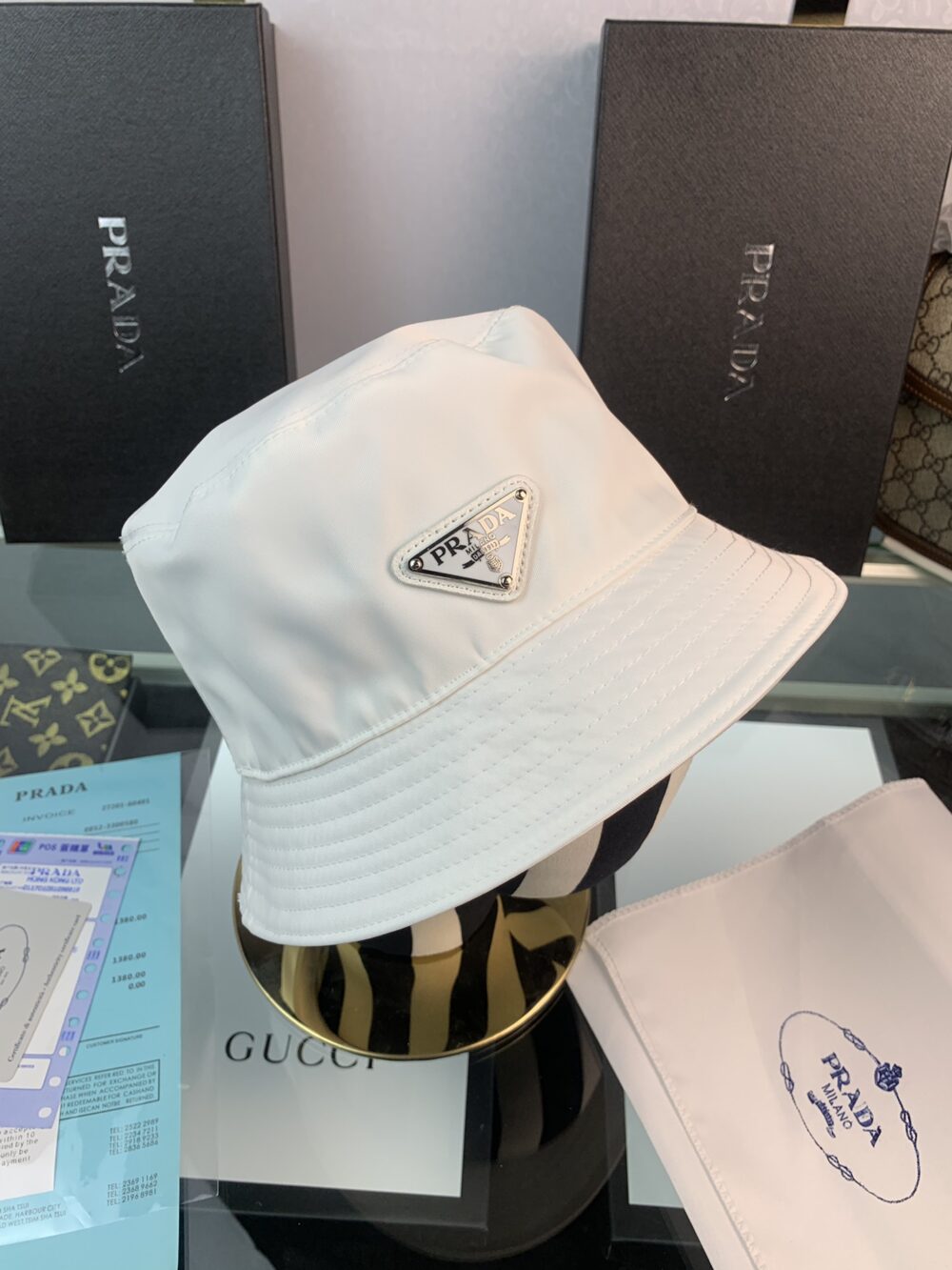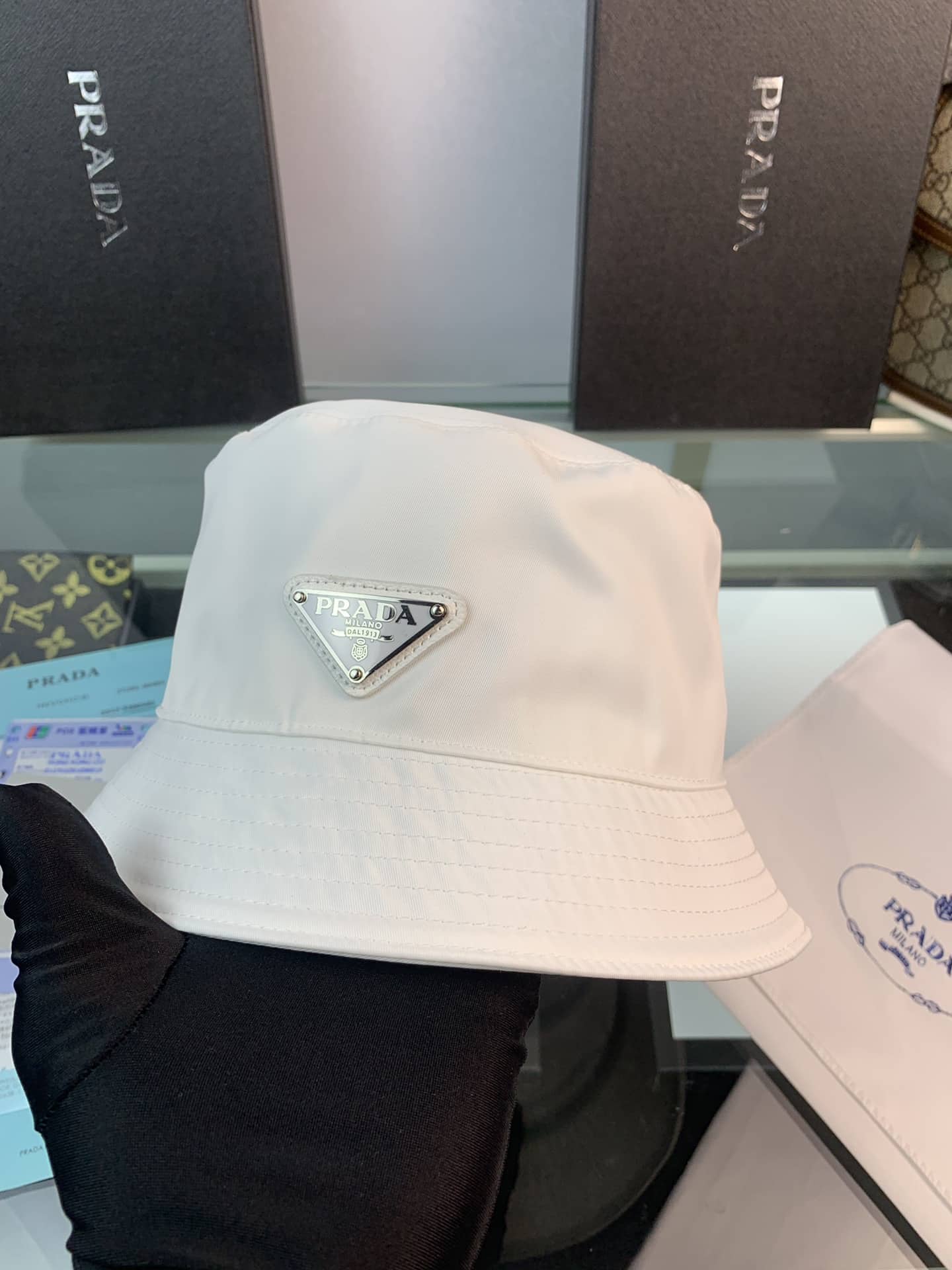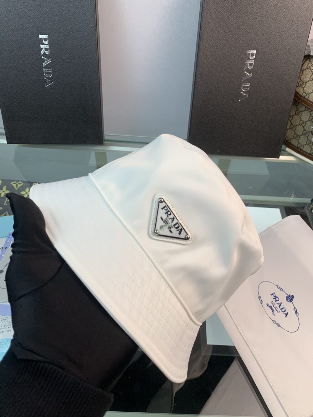 PRADA RENYLON BUCKET HAT SLIVER