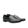 These deconstructed loafers made of fine Saffiano leather express casual elegance. The shoe is accented by the iconic logo on the strap and the rubber sole with tortoiseshell tread.