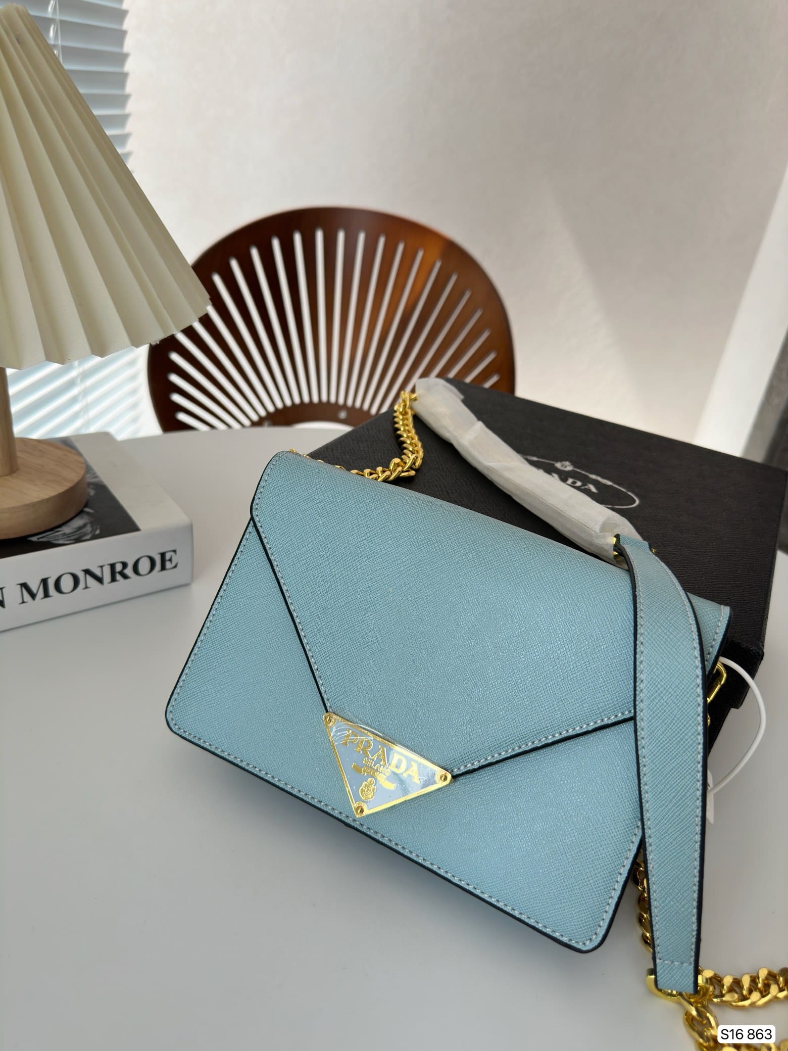 Prada/21cm Saffiano Leather Shoulder Bag Light Blue 1BD318 NZV F0076 V CTO