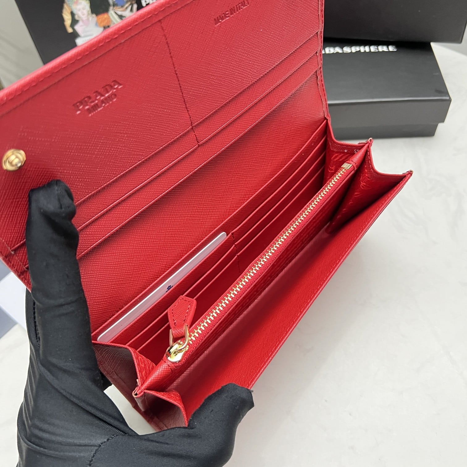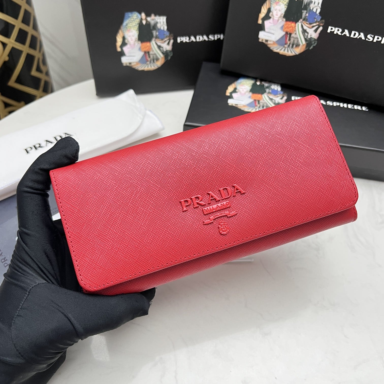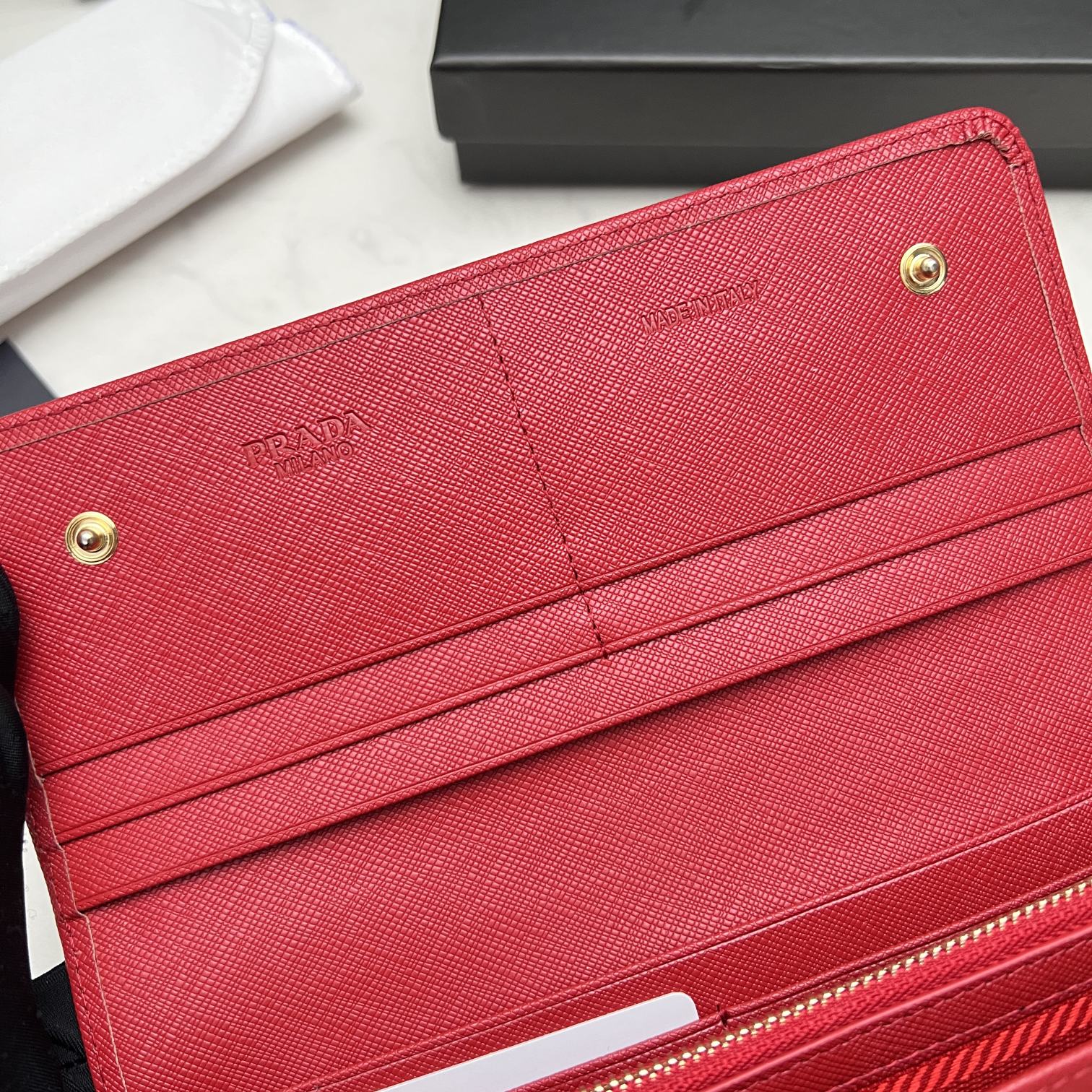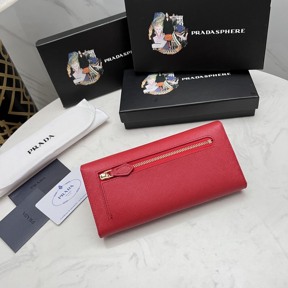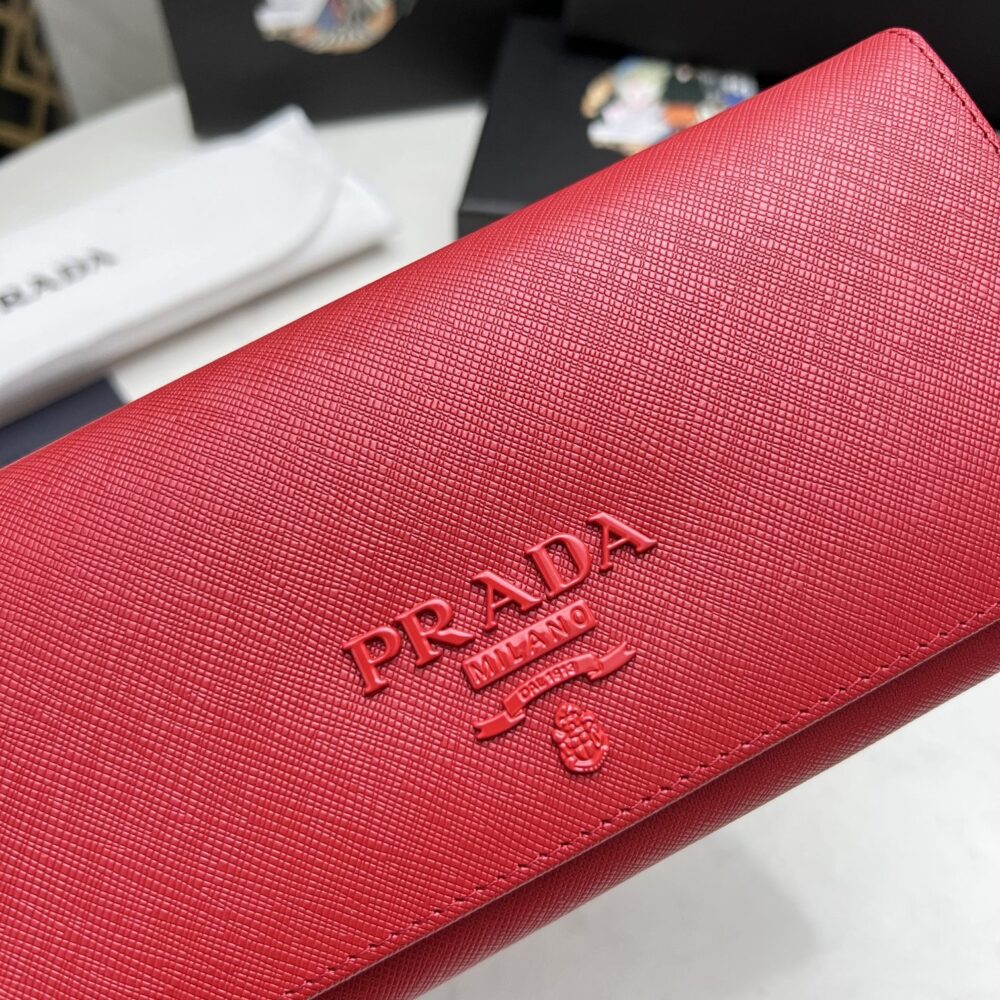 PRADA SAFFIANO MONOCHROME FLAP LONG WALLET FULL RED 19CM 1MH132 ZLP F061H