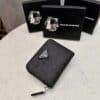 Prada Small Saffiano Leather/10cm Wallet Black And Silver 1ml036 Qhh F0002