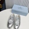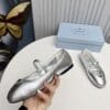 PRADA SOFT PADDED NAPPA LEATHER BALLERINAS SILVER