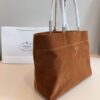 The Prada Suede Tote Bag in Brown is a luxurious and tactile essential that embodies the brand’s signature minimalist sophistication. Often identified as the Bonnie Large Suede Handbag or the Medium Suede Tote, this silhouette is characterized by its clean lines, supple calf suede construction, and subtle branding.