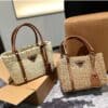 Prada//Two Tone Woven Tote Bag In Multi//Natural//28cm//1BG336VZOO2DJD