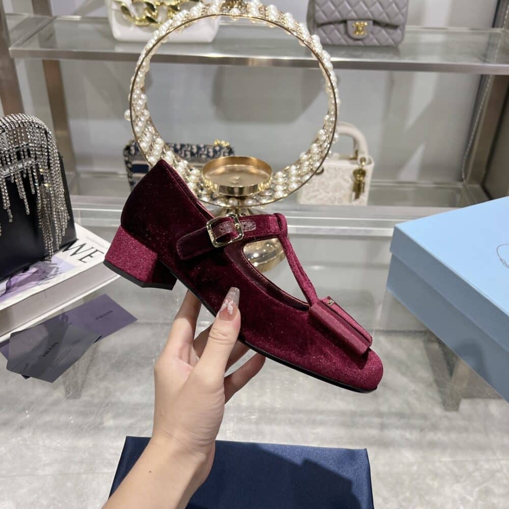 - Upper with grosgrain bow and metal buckle