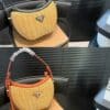 Prada Wicker And Leather Arqué Bag Tan 1BC202 2CYF F0018 V OOO / 22cm / 8.7 inches