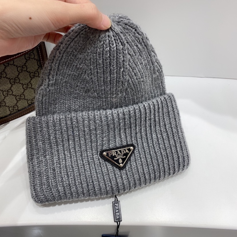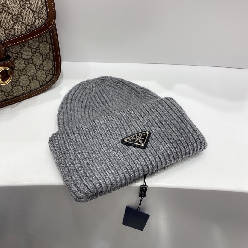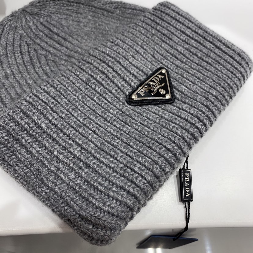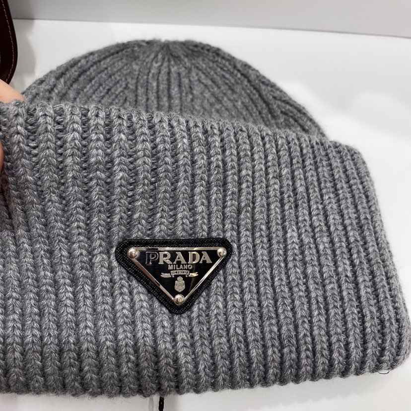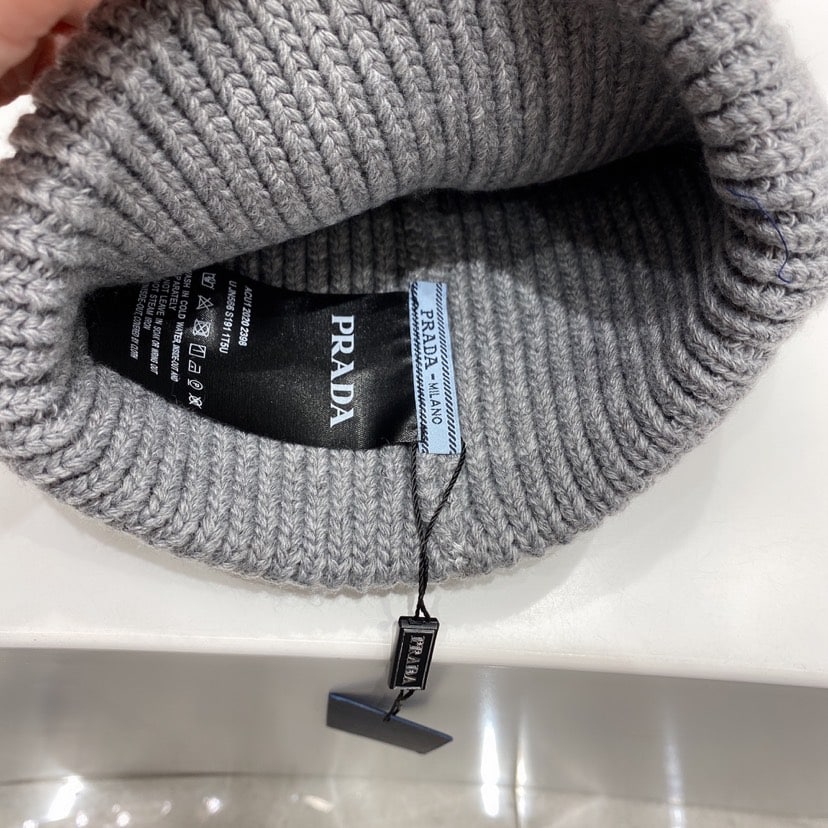 Prada Wool and Cashmere Beanie Grey UMD489 3IM F0480 S 211